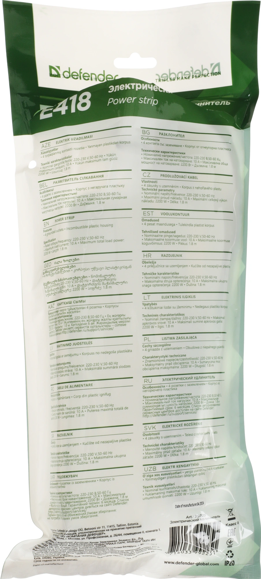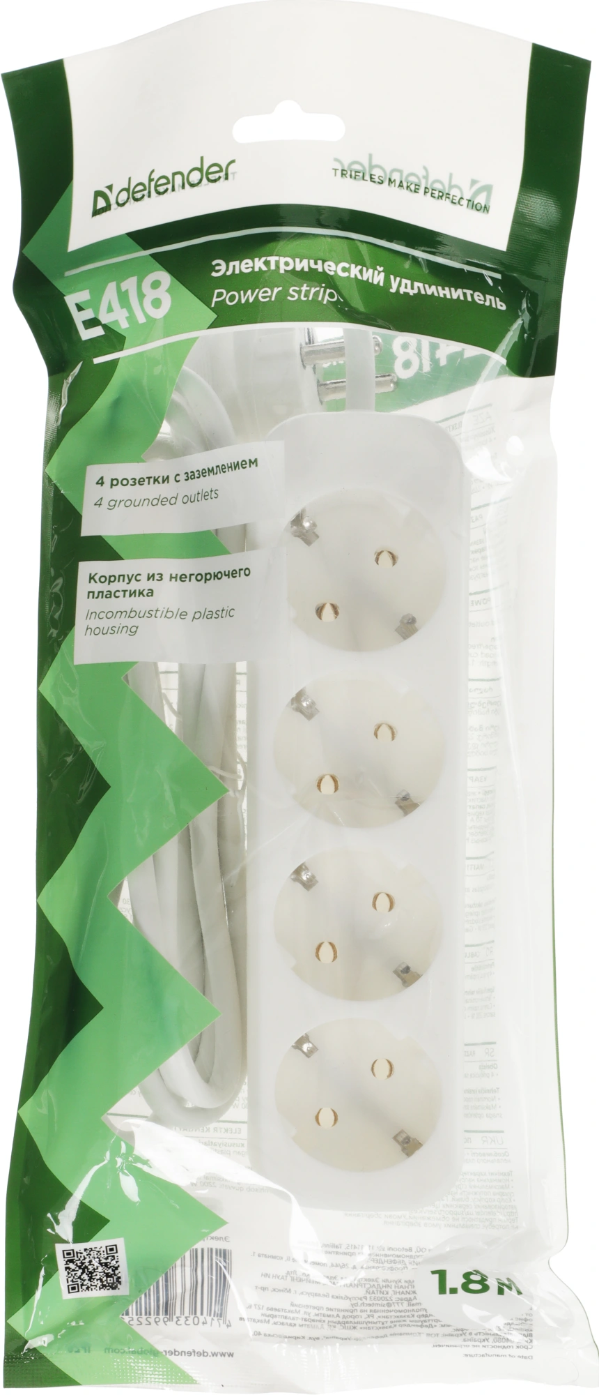 1.8м (4 розетки) белый (пакет ПЭ)
