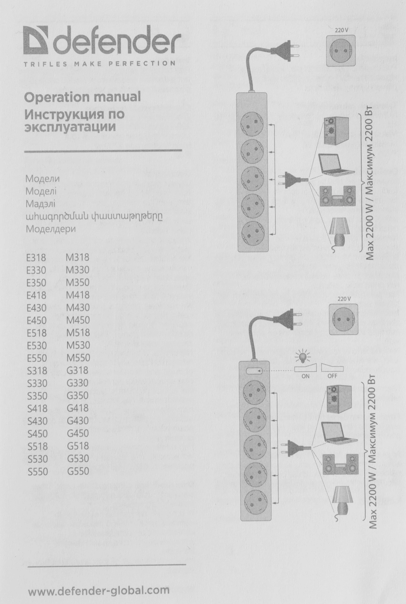 Сетевой удлинитель Defender E550