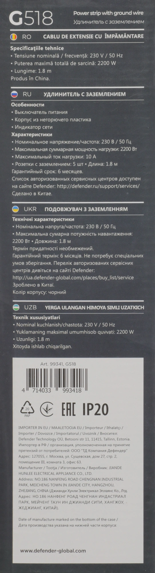 1.8м (5 розеток) черный (коробка)