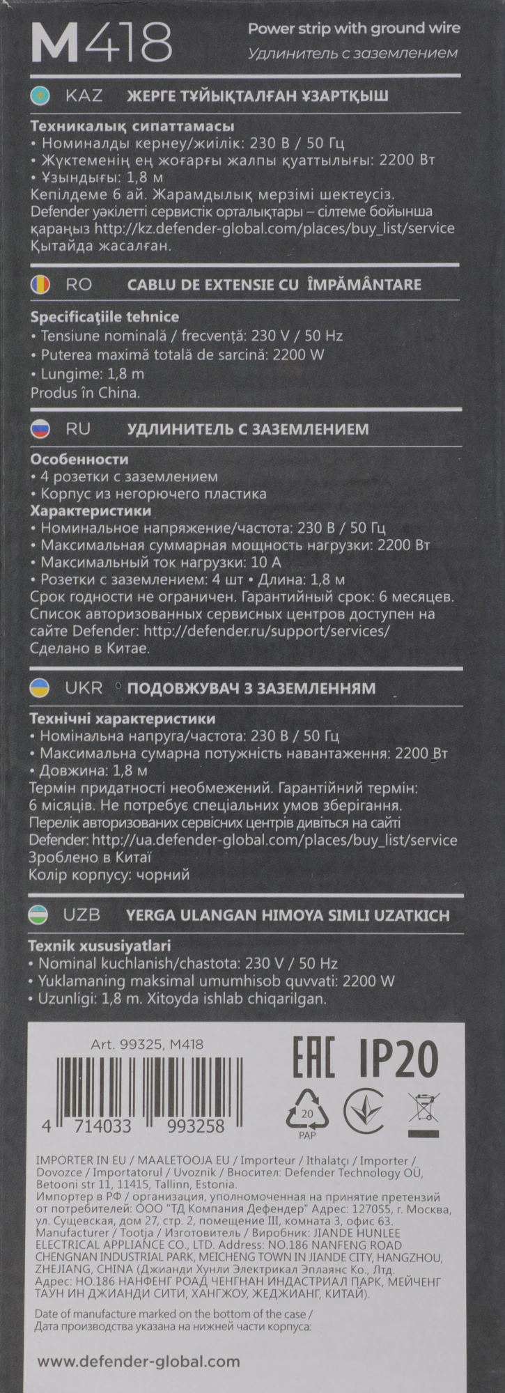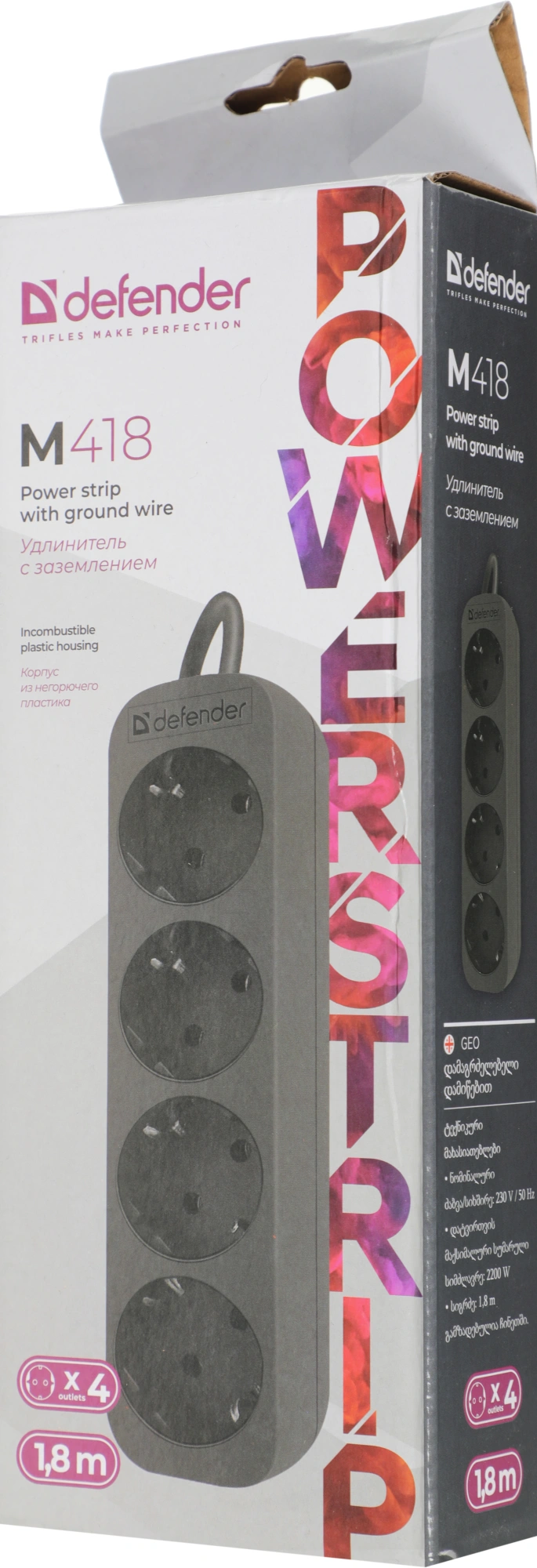 1.8м (4 розетки) черный (коробка)