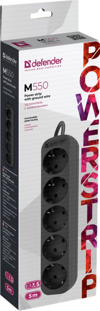 5м (5 розеток) черный (коробка)