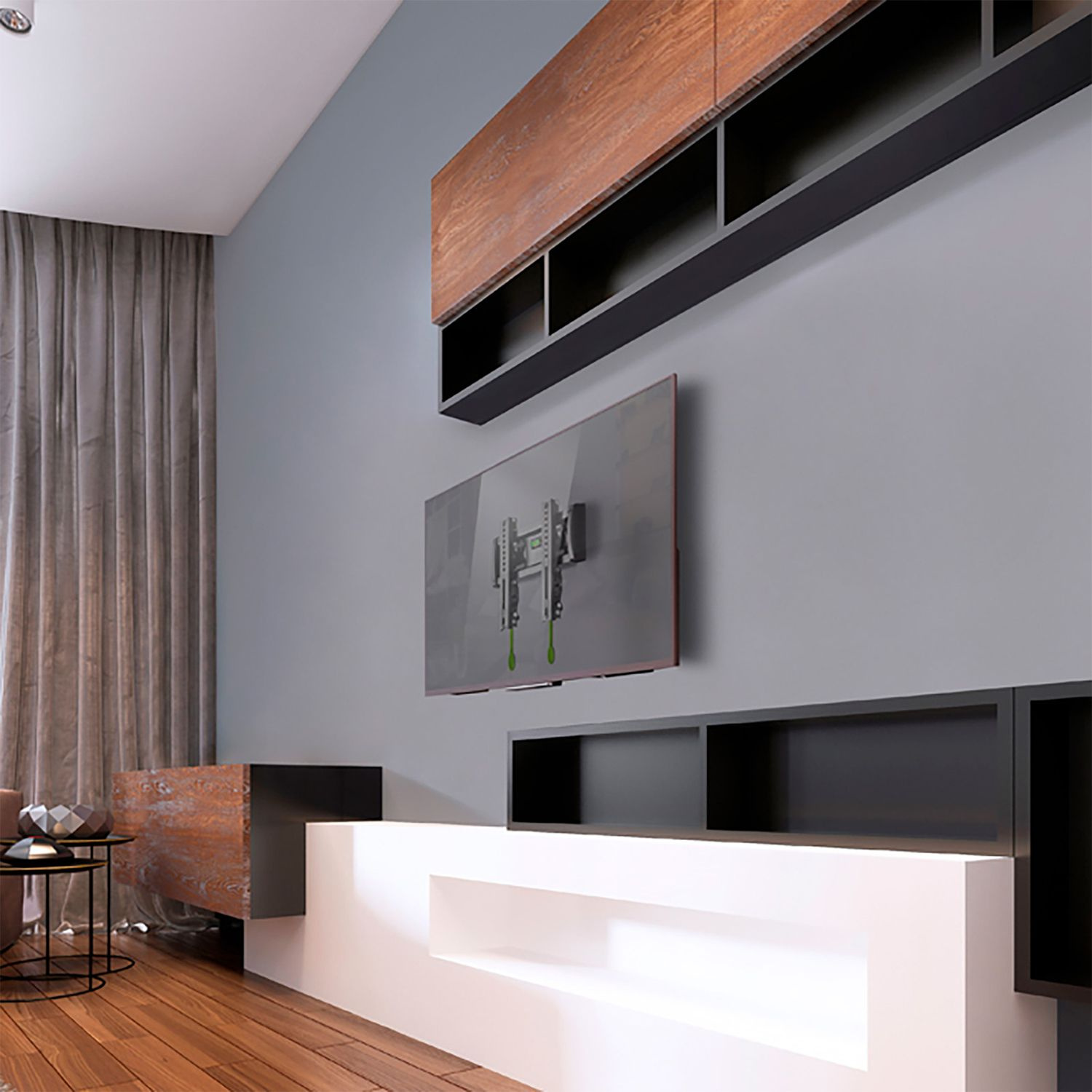 Встроенный уровень. Простая система фиксации Вашей digital-панели. Большой угол наклона – до 15 . Пластиковые декоративные накладки.