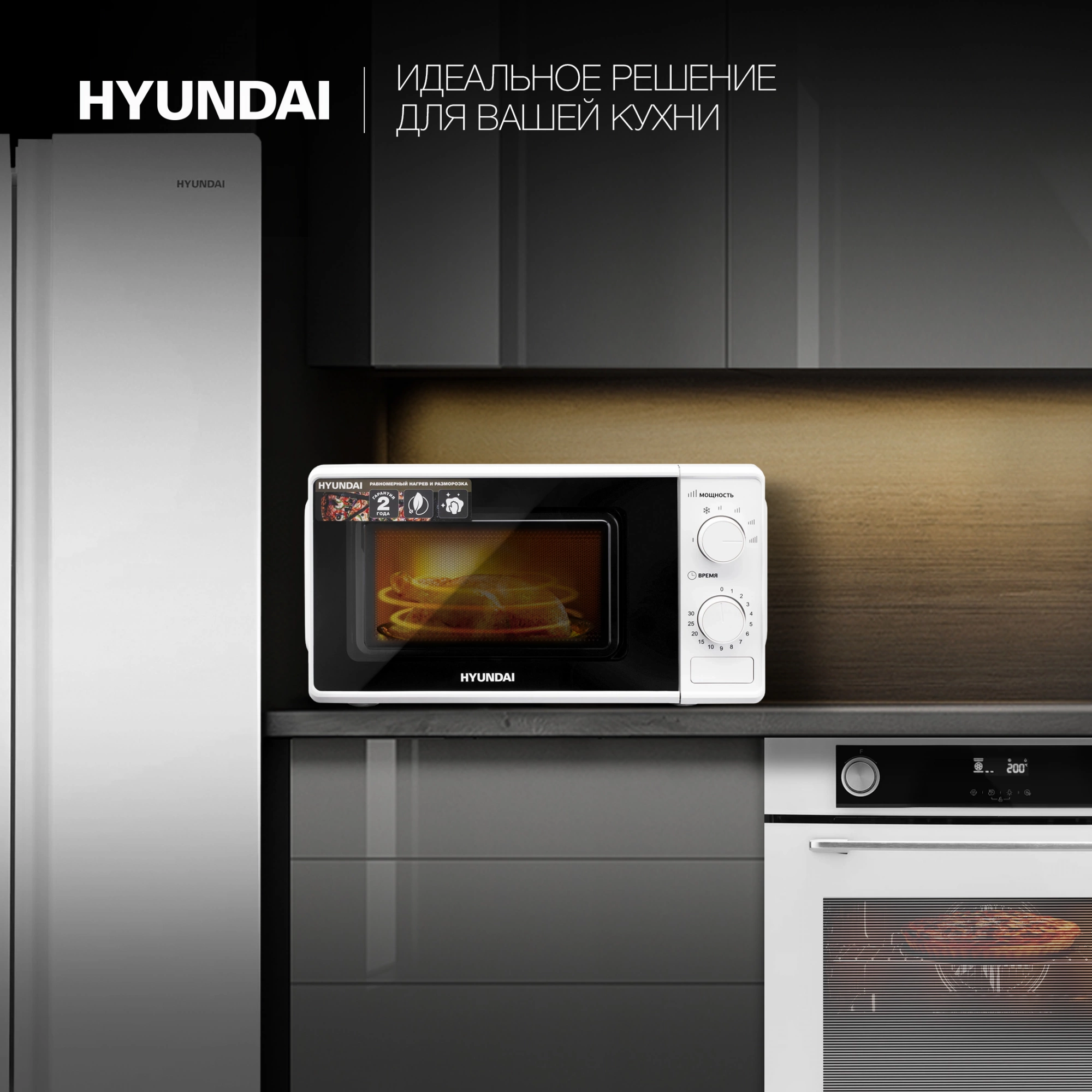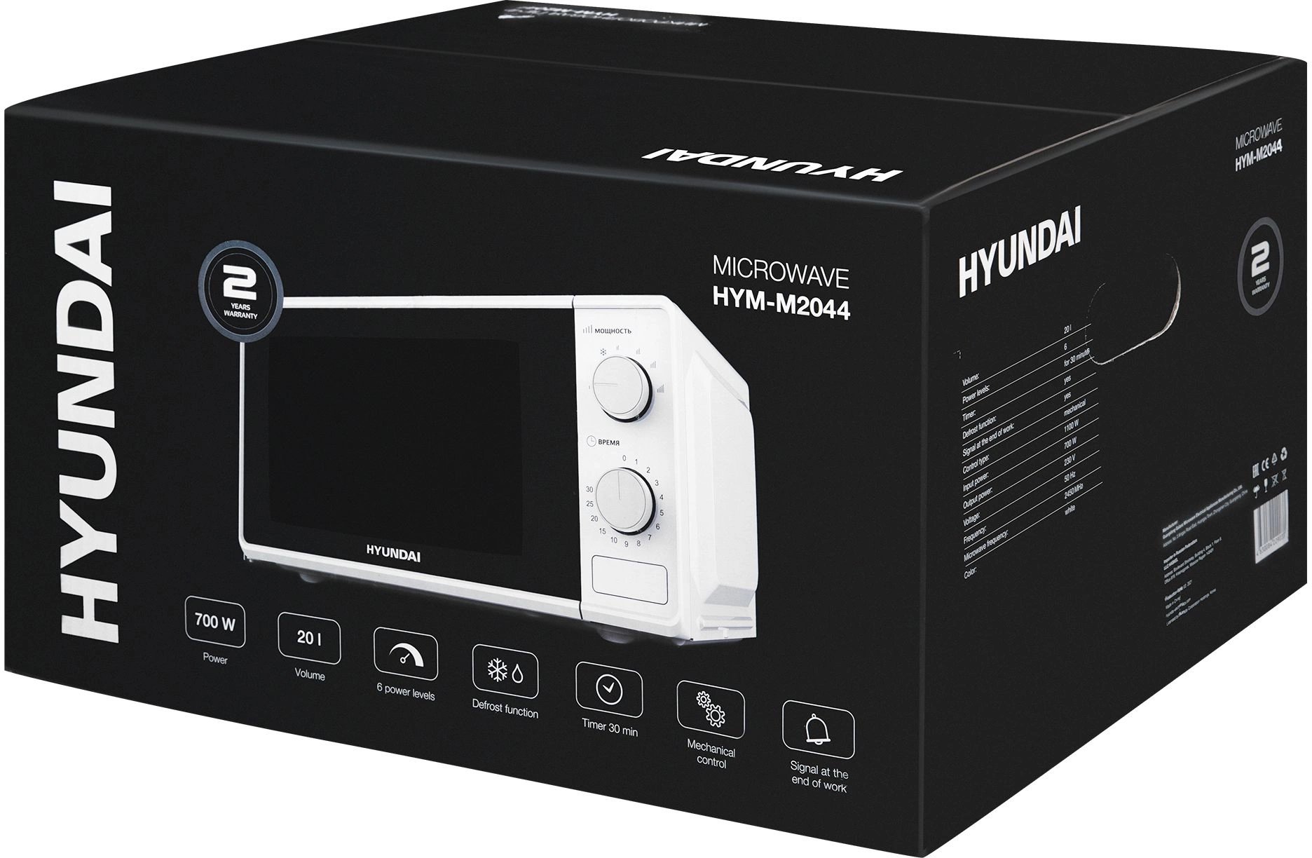 Микроволновая печь Hyundai HYM-M2044, имеющая мощность порядка 700 Вт, будет практически незаменимой техникой на вашем кухонном пространстве. Бытовой прибор выполнен в универсальном белом цвете, отлично гармонирующем с любым стилем интерьера. На фронтальной стороне микроволновой печи располагается дверь с черной окантовкой, а справа есть панель управления. Объем СВЧ составляет порядка 20 литров. Этого вполне достаточно при разогреве блюд для большой семьи. Как снаружи, так и внутри микроволновой печи есть эмалевое покрытие, которое значительно упрощает процедуры ухода. При эксплуатации бытовая техника работает практически бесшумно. Она справится с разогревом пищи и разморозкой мяса без особых проблем.