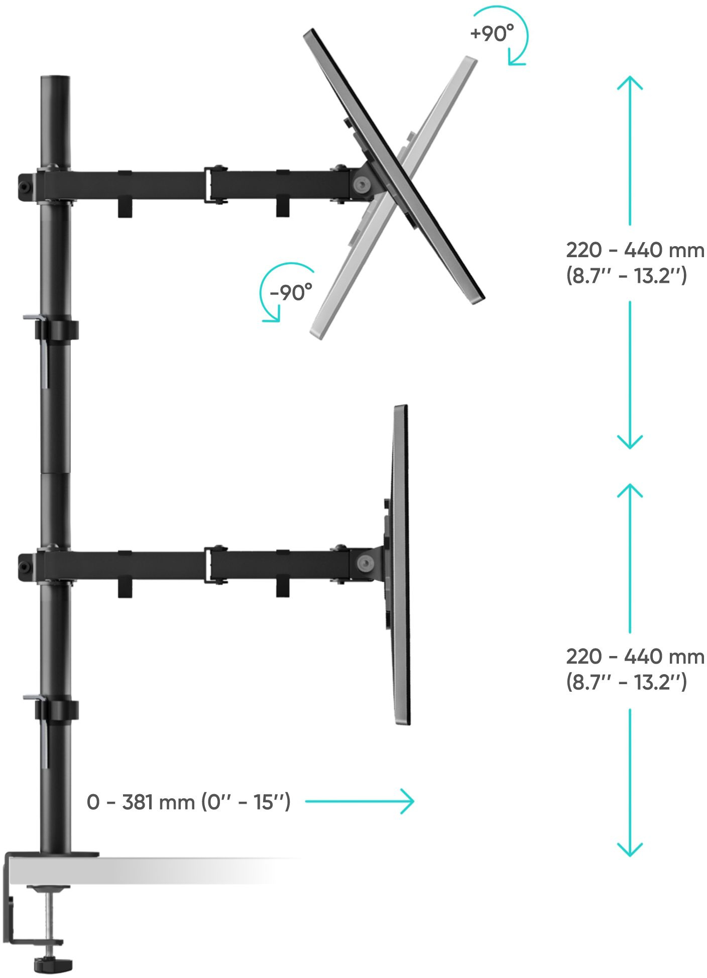 Настольный кронштейн для четырех мониторов, ONKRON D421E подходит для мониторов и телевизоров диагональю от 13 до 32 дюймов и весом до 8 кг на каждый.