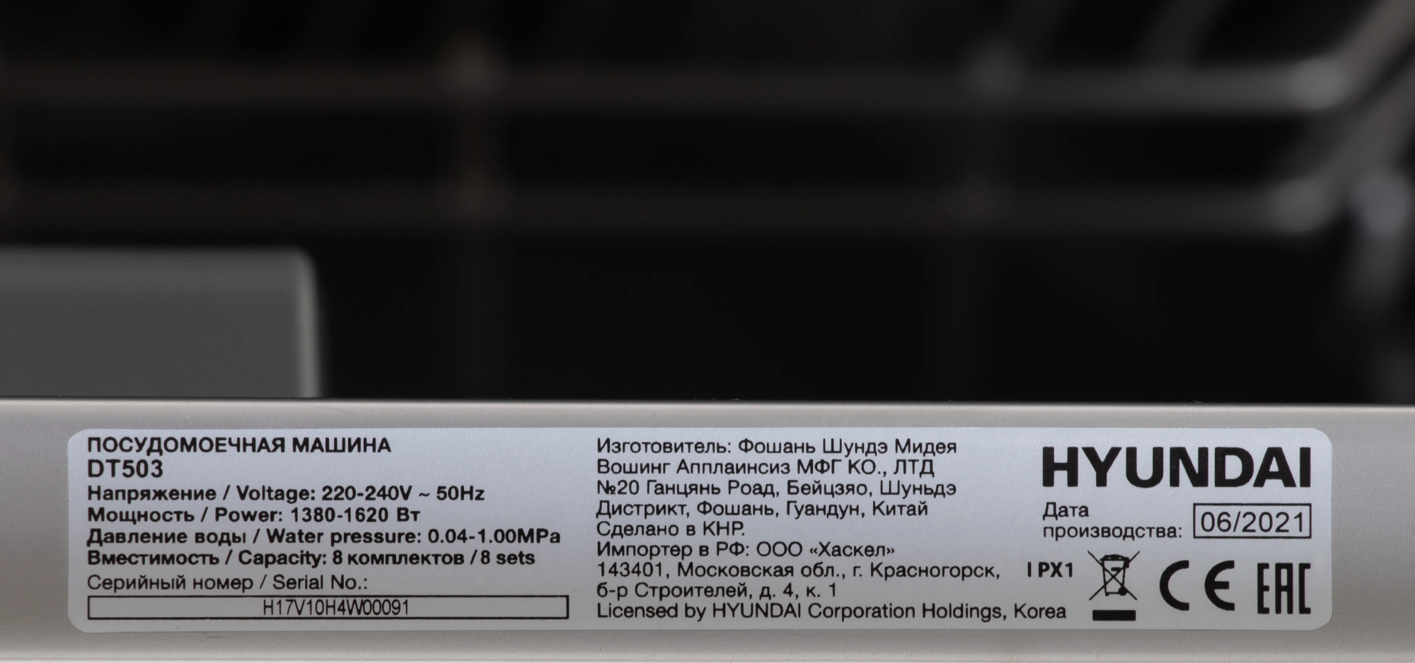 Всего в посудомоечной машине Hyundai DT503 предусмотрено 6 программ мойки посуды: