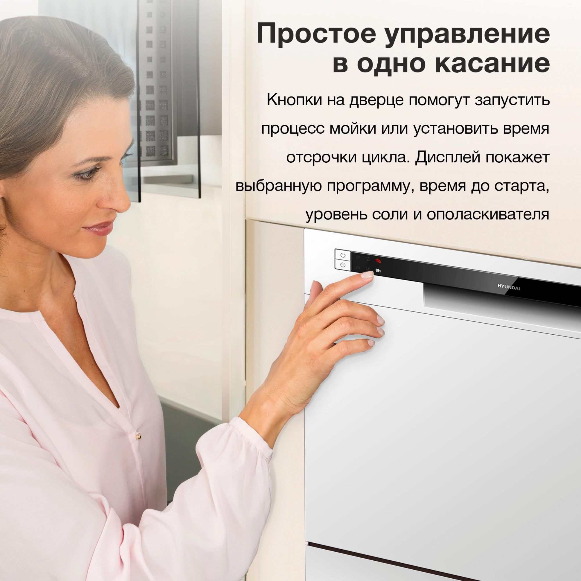Забудьте о ежедневных домашних хлопотах. Посудомоечные машины Hyundai заботливо помоют и высушат посуду, освободив Ваше время для более важных дел.