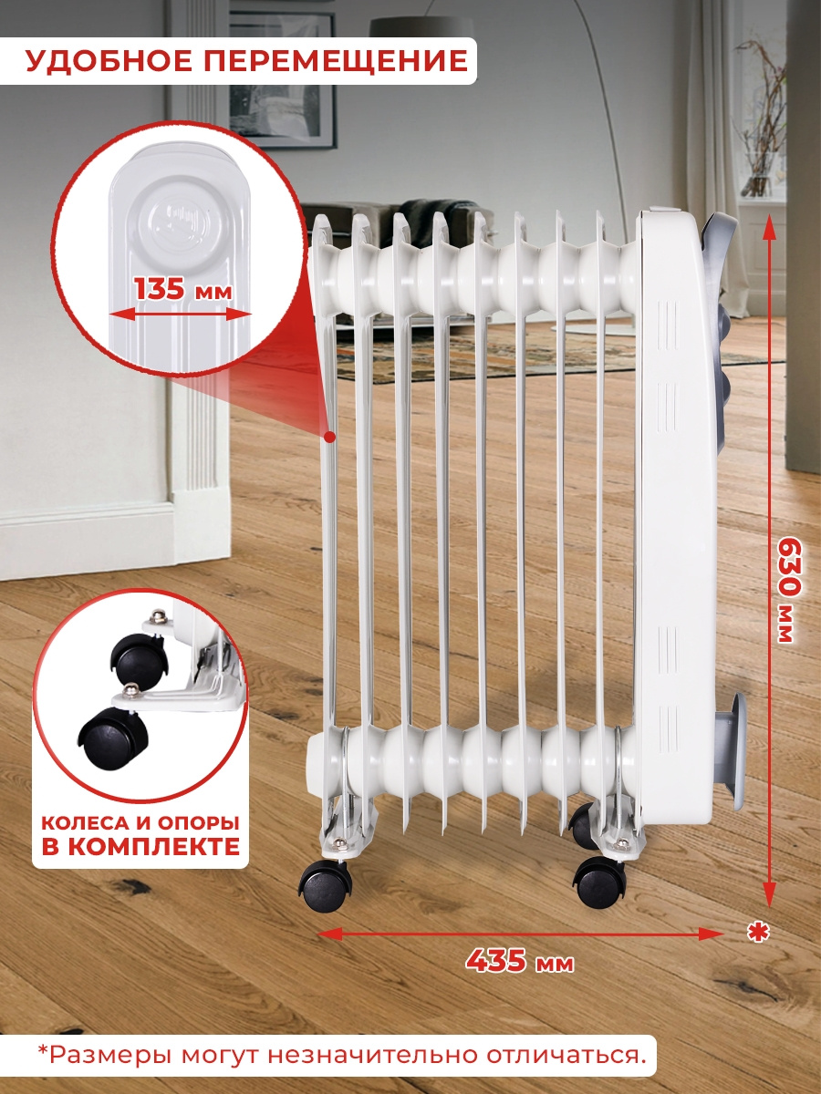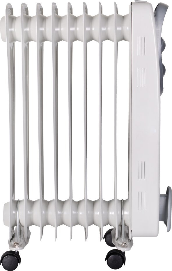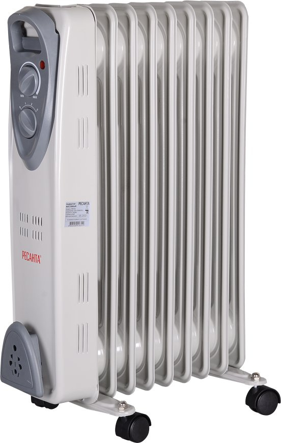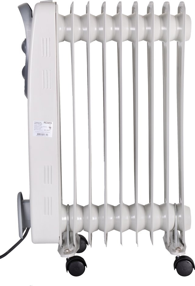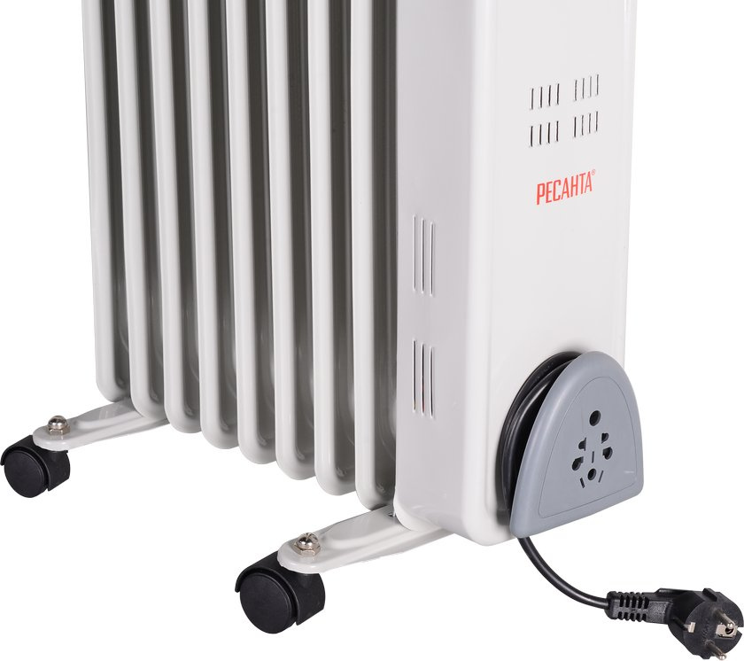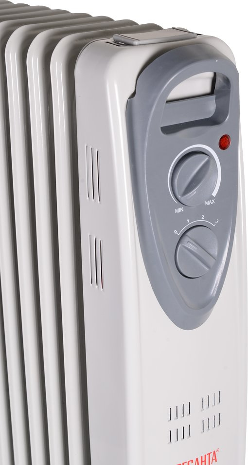 Масляный радиатор оснащен термостатом, что позволяет ему автоматически поддерживать в помещении заданную пользователем температуру. Существенным плюсом является и то, что он обладает низкой температурой корпуса, благодаря чему практически не выжигает кислород в помещении.
