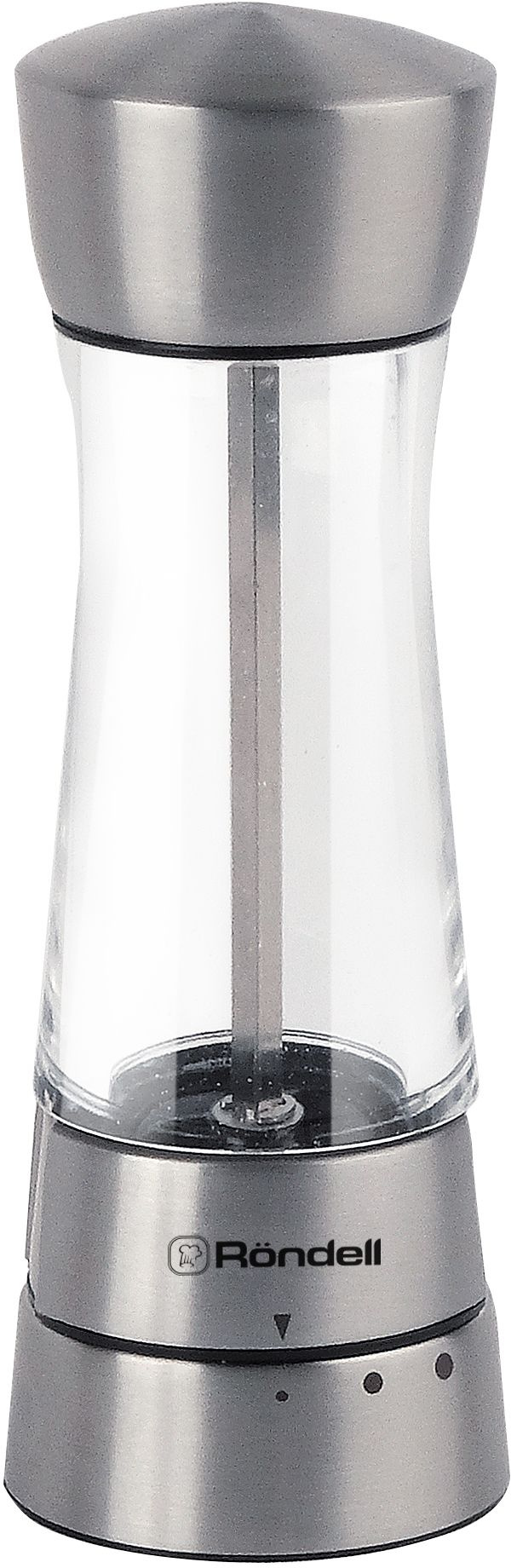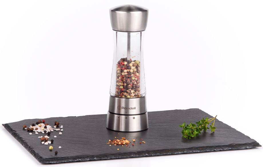 Регулируемая степень помола - 3 уровня. Прозрачный контейнер для специй. Материал: нержавеющая сталь и акрил, Керамические жернова. Режим работы: механика. Вместимость: 47 гр черного перца горошком. Сохраняет рабочую поверхность в идеальной чистоте, благодаря жерновам, расположенным сверху.