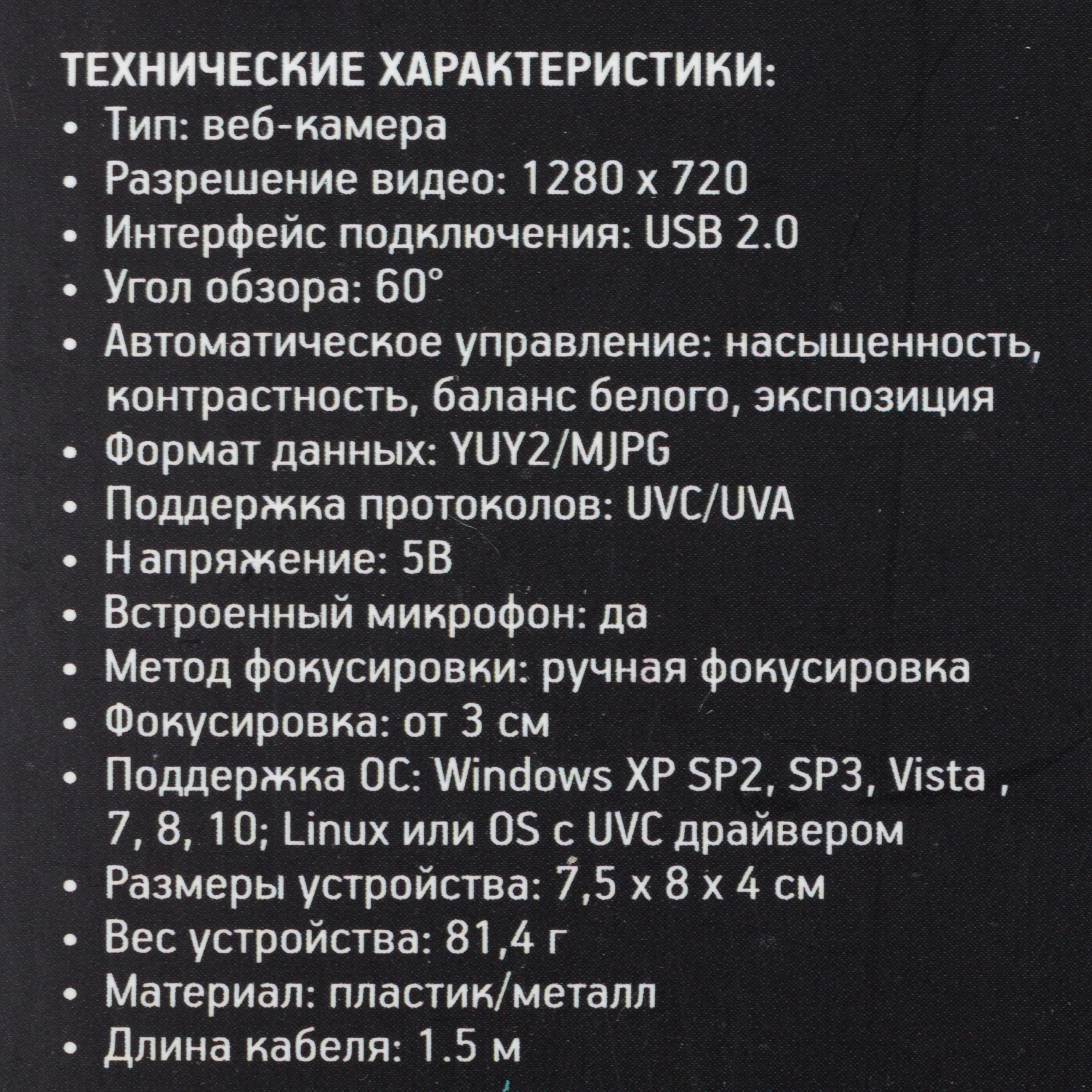 Черный цвет камеры придает ей стильный и современный вид, а длина кабеля в 1.5 метра дает гибкость в размещении. Web-камера Оклик OK-C012HD – это прекрасный выбор для тех, кто ценит качество и удобство.