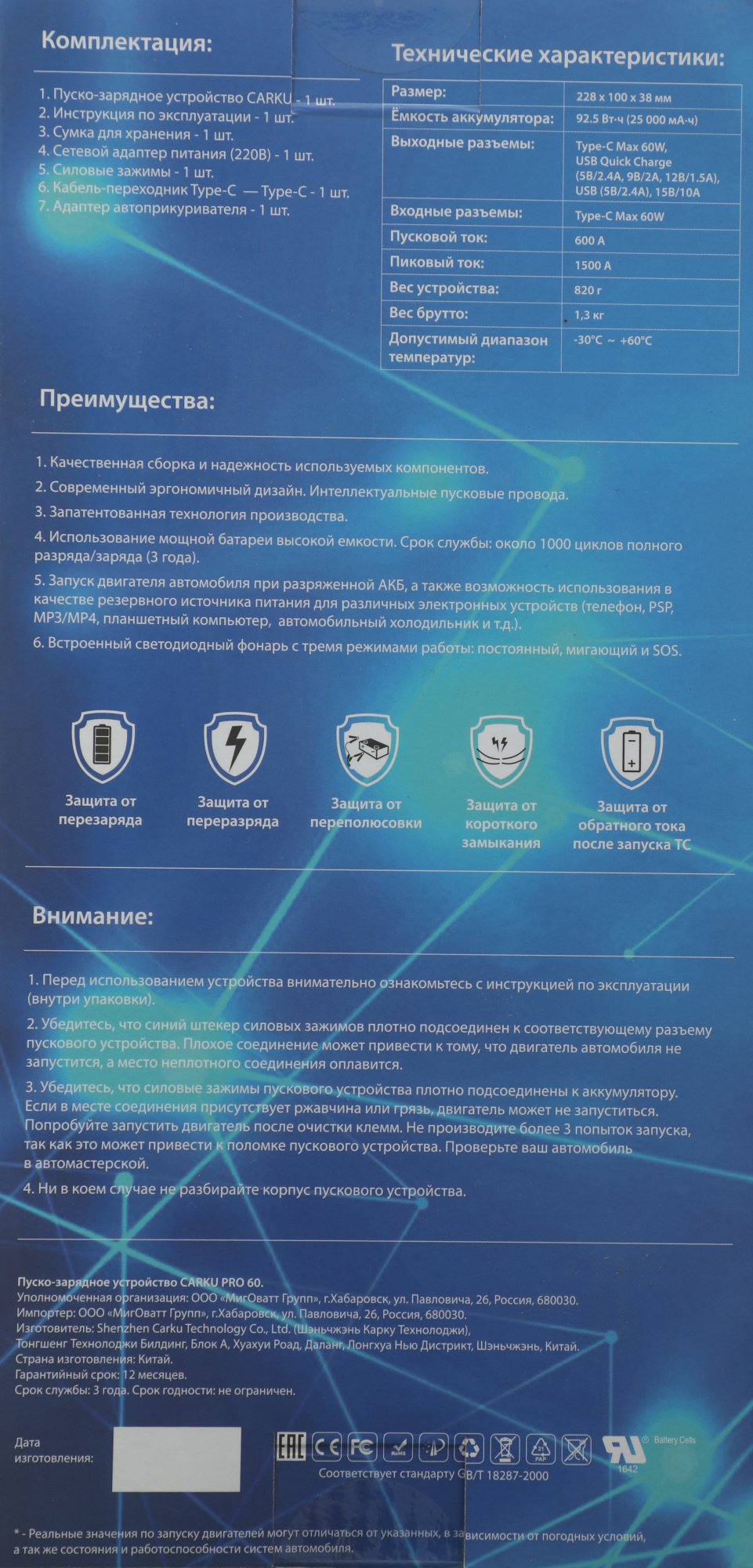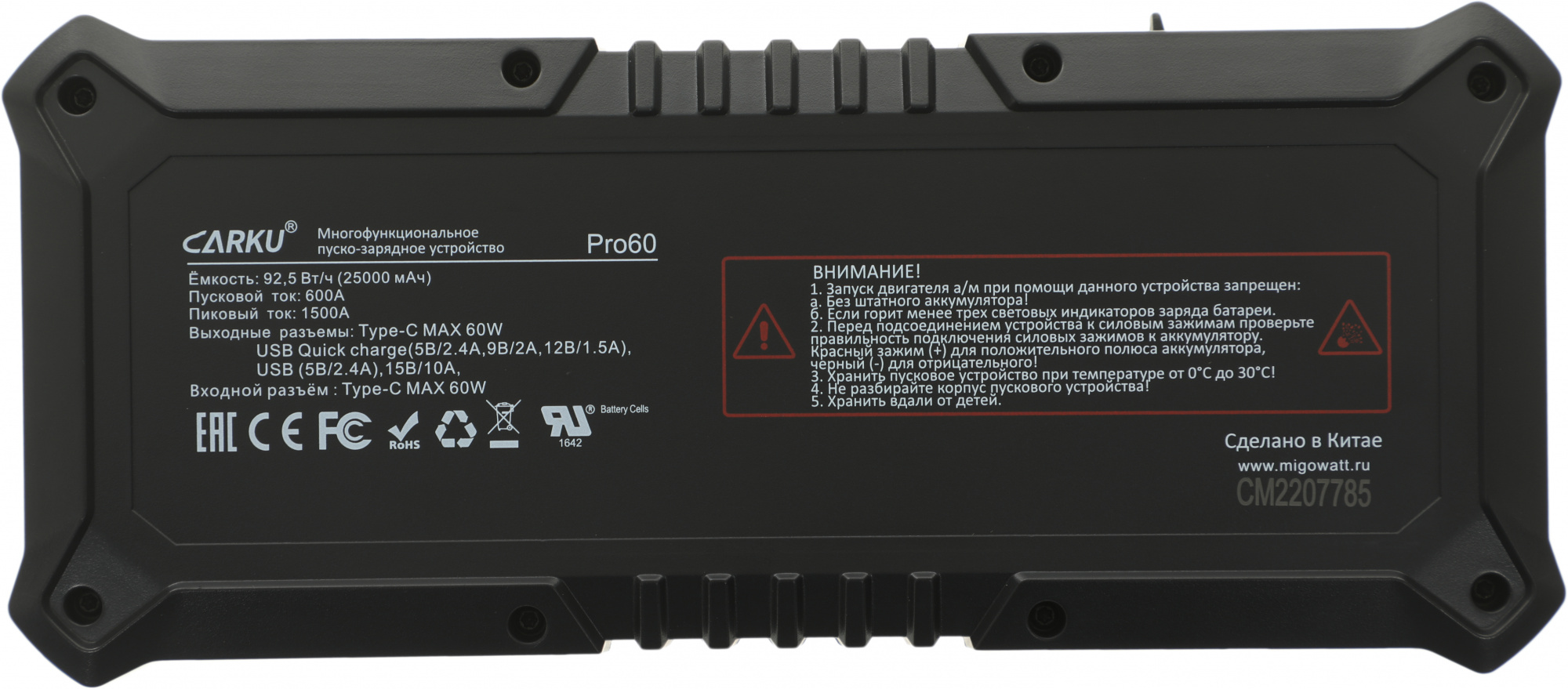 Это самый мощный представитель новой, продвинутой линейки портативных пусковых устройств бренда CARKU. Линейка PRO отличается значительно улучшенными пусковыми характеристиками и более широкими возможностями для зарядки и питания различных мобильных устройств.