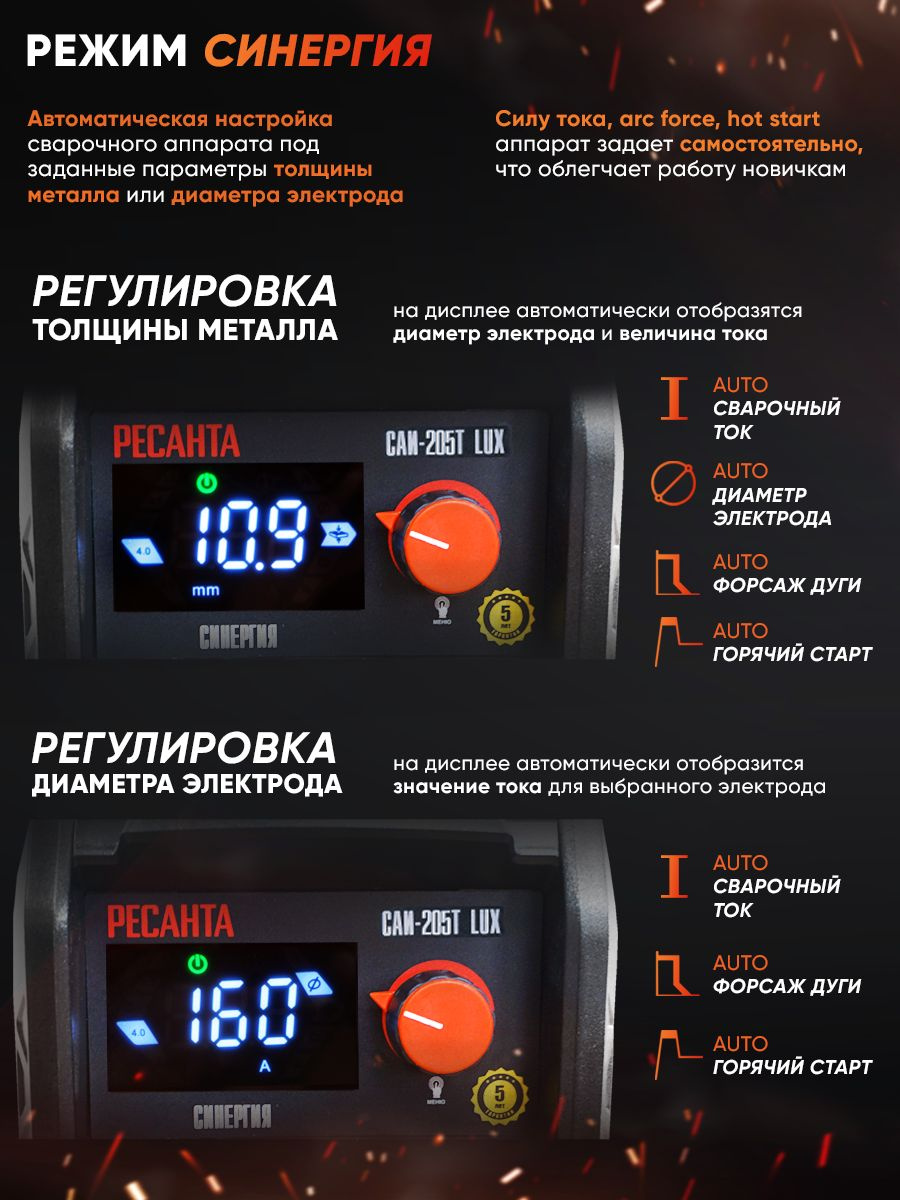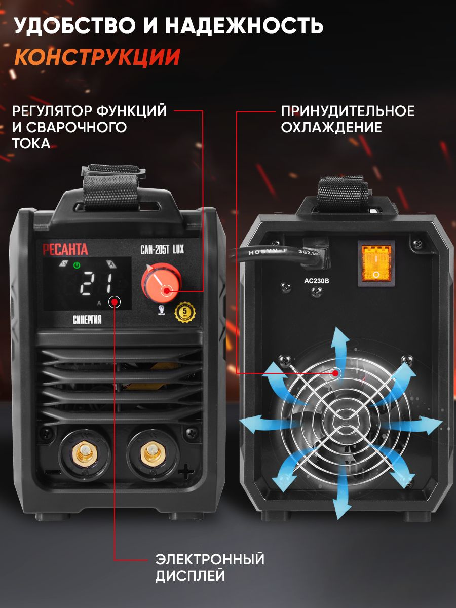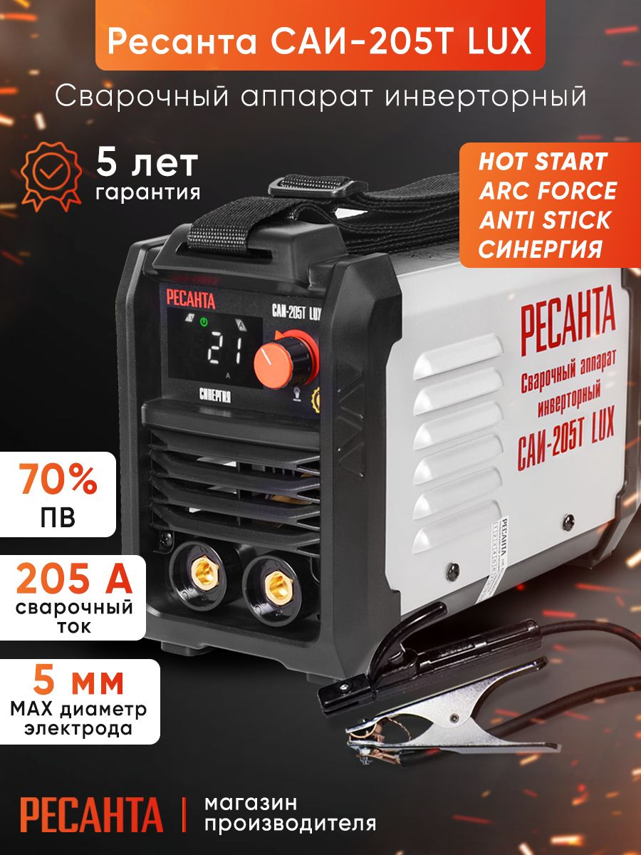 САИ-205T LUX - предназначены для ручной дуговой сварки штучным покрытым электродом на постоянном токе и электродом с рутиловым и основным покрытием (режим ММА).Данная серия сварочных аппаратов разработана на базе IGBT транзисторов TOSHIBA.