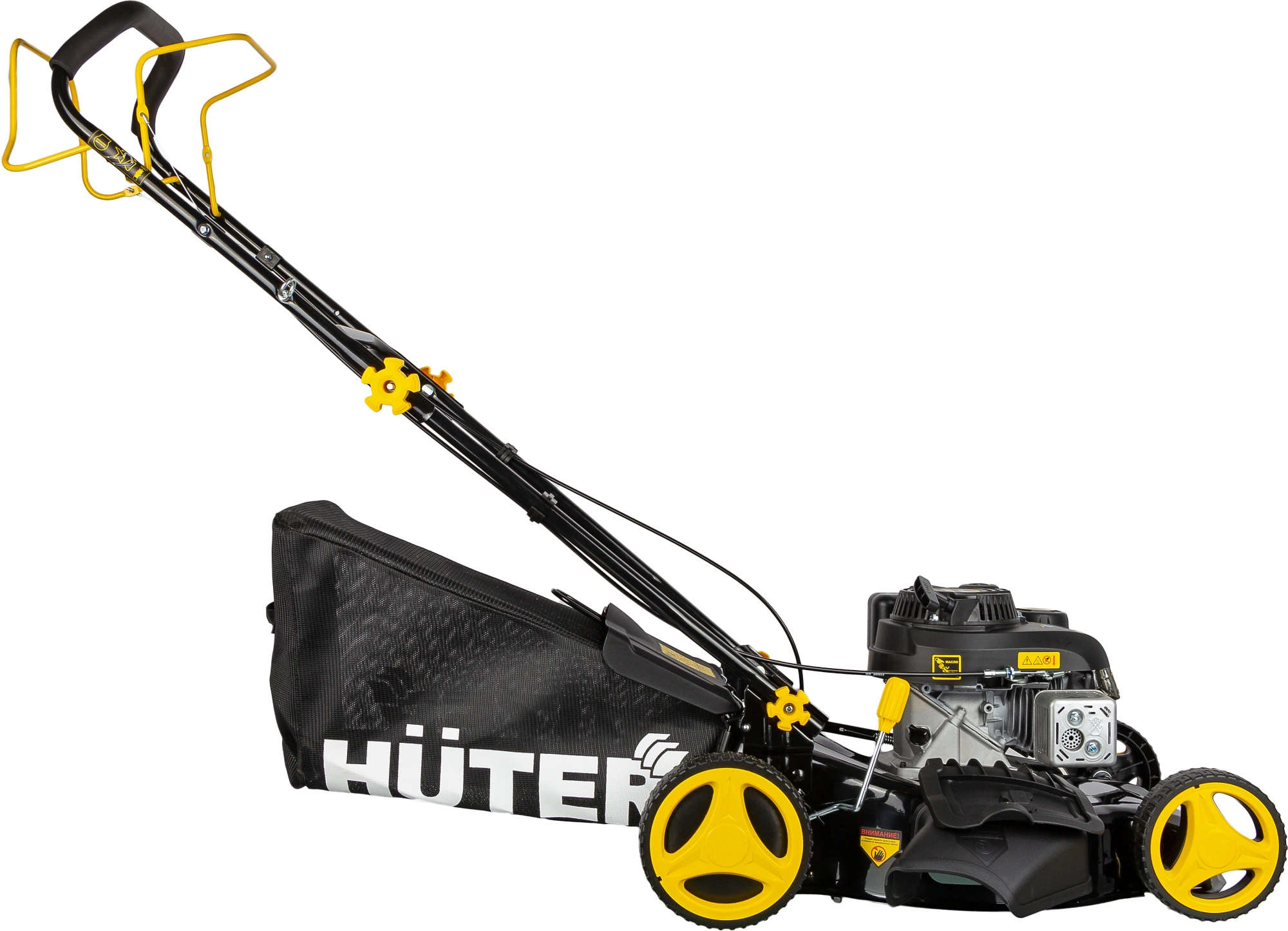 Тканевый травосборник рассчитан на 60 л, что позволит делать меньше остановок в работе. Газонокосилка работает на бензиновом двигателе, отличающемся повышенной мощностью и эффективностью в работе.