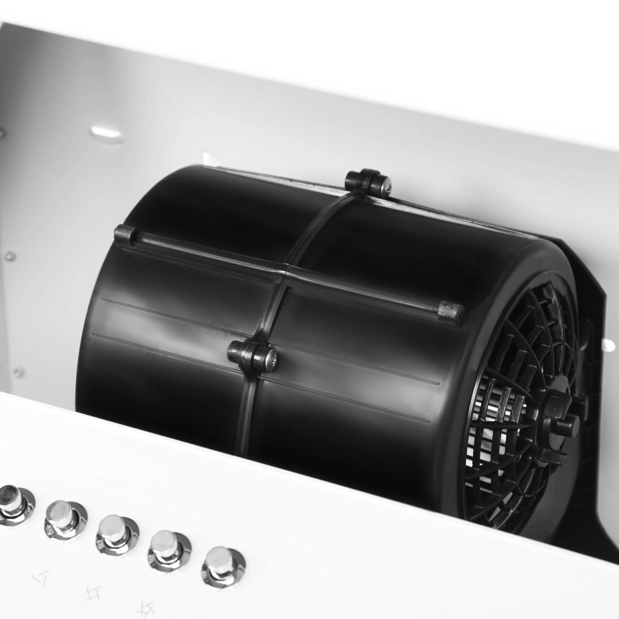 Два режима работы. Устройство поддерживает работу в двух режимах: отвод воздуха и рециркуляция. Подключите прибор к вентиляционной решетке, чтобы воздух самостоятельно выводился из кухни за счет тяги в вентиляционном канале либо за счет работы вентилятора. В режиме рециркуляции воздух проходит два этапа очистки и возвращается обратно в помещение. Для работы в режиме рециркуляции потребуется приобрести специальные угольные фильтры.
