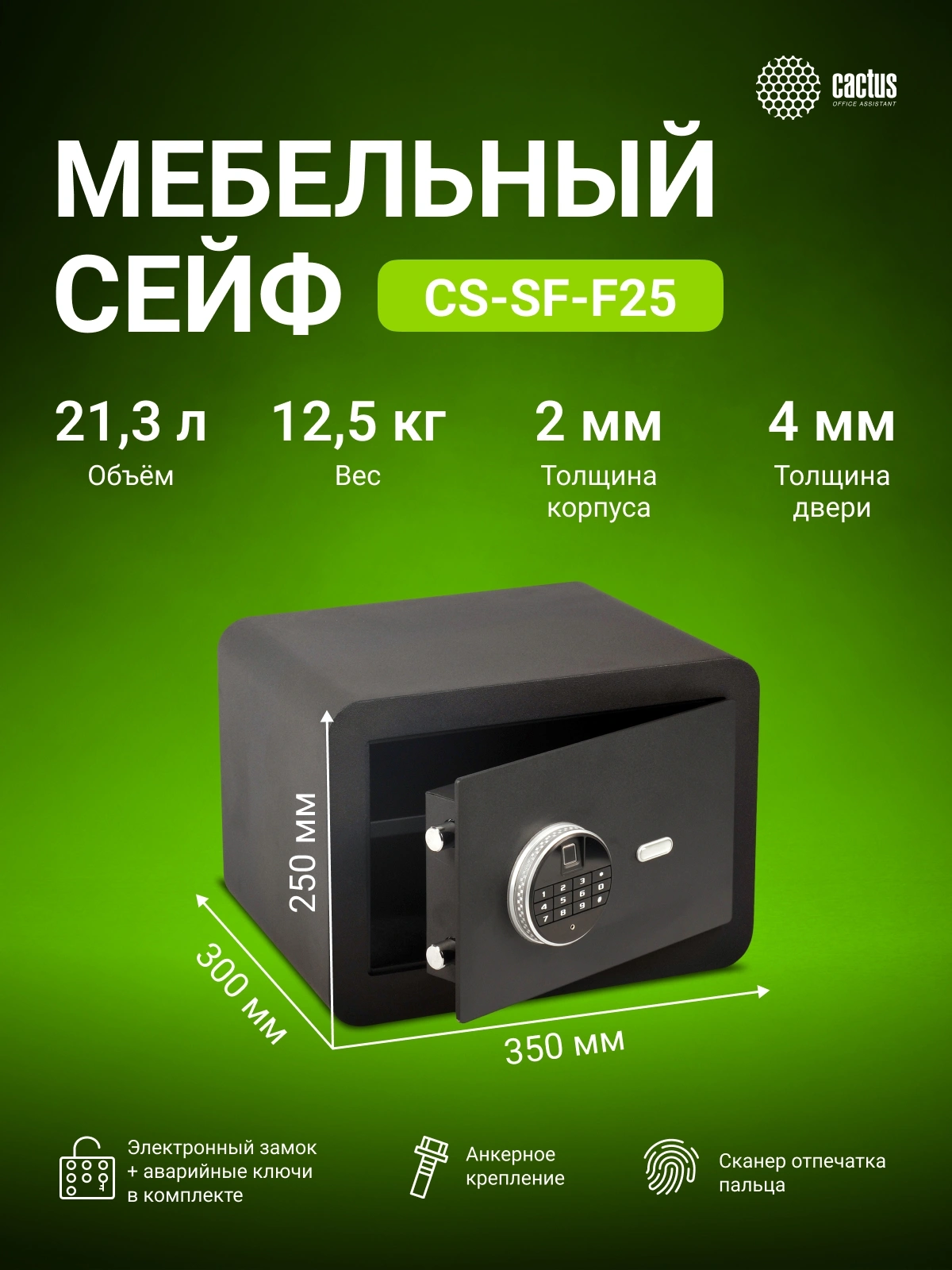 Сейф CS-SF-F25 – это эксклюзивное предложение на рынке биометрических сейфов с уникальным сочетанием передовых технологий и стильного дизайна. Он отличается от скучных и устаревших моделей с квадратными углами, которые можно встретить повсеместно, предлагая одновременно элегантность и безопасность для надежного хранения документов, денег, ювелирных украшений и других ценностей. Электронный замок с возможностью открытия по отпечатку пальца обеспечивает мгновенный доступ к содержимому. Внутри сейфа предусмотрена съёмная полка, позволяющая оптимально организовать хранение различных предметов. В комплекте с сейфом идут батарейки, необходимые для бесперебойной работы замка, и аварийный комплект ключей для гарантированного экстренного открытия в случае разряда батарей или других непредвиденных ситуаций. Для максимальной безопасности предусмотрена возможность надежного крепления к полу и стене с помощью высокопрочных анкерных болтов, что существенно повышает устойчивость сейфа к взлому. Благодаря элегантному и современному дизайну со скругленными углами, сейф гармонично впишется в любой интерьер офиса или дома.