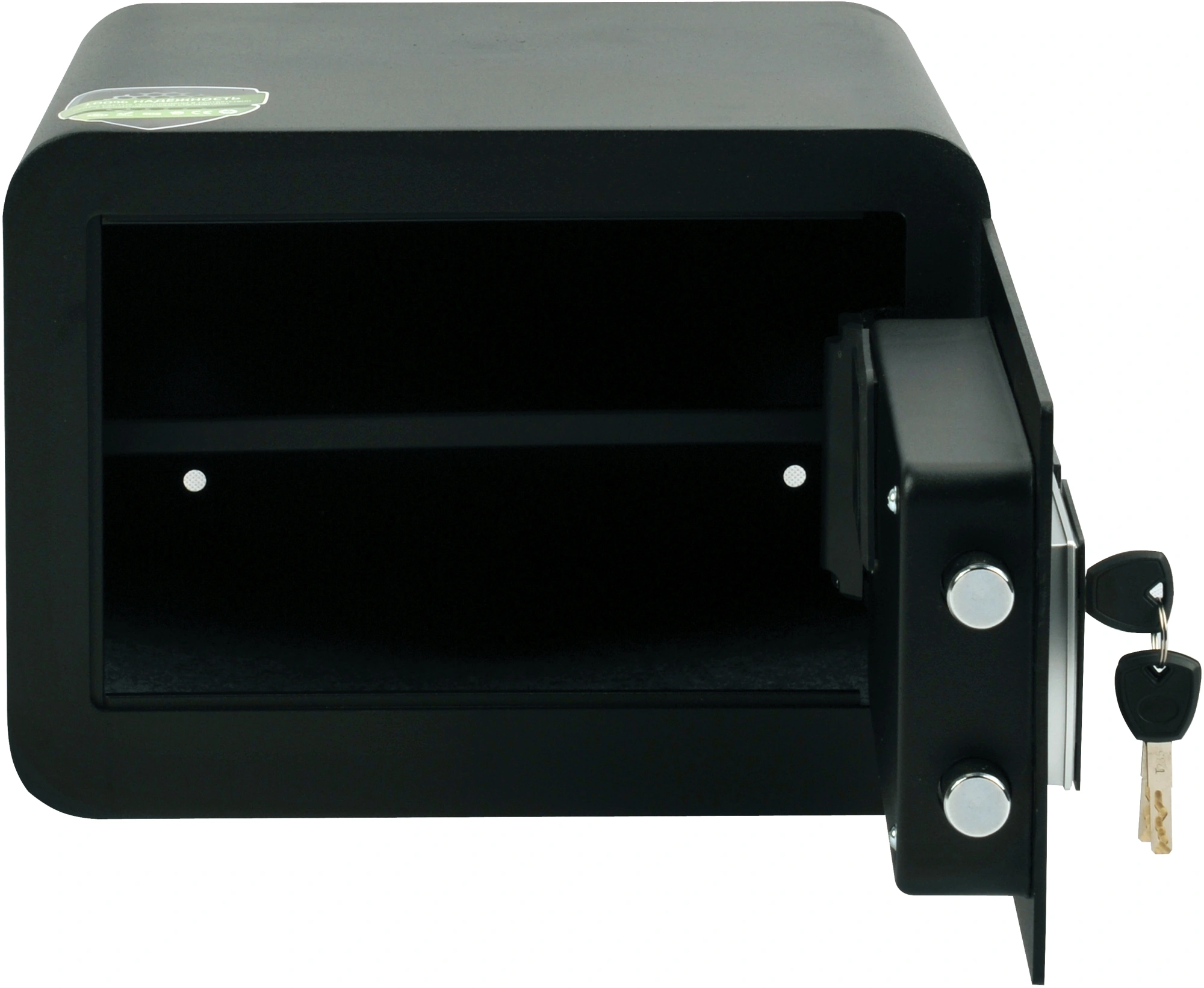 Сейф легко крепится к стене или полу, а съёмная полка позволяет рационально использовать внутреннее пространство.