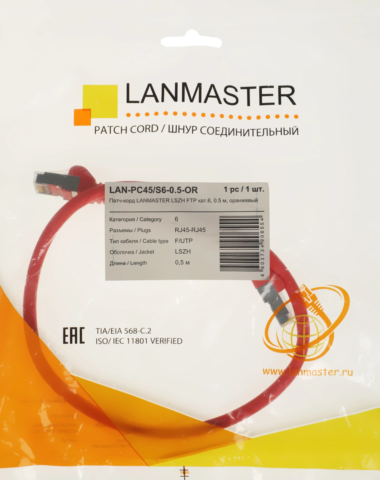 Патч-корд Lanmaster LAN-PC45/S6-0.5-OR FTP RJ-45 вил.-вилка RJ-45 кат.6 0.5м оранжевый LSZH (уп.:1шт)