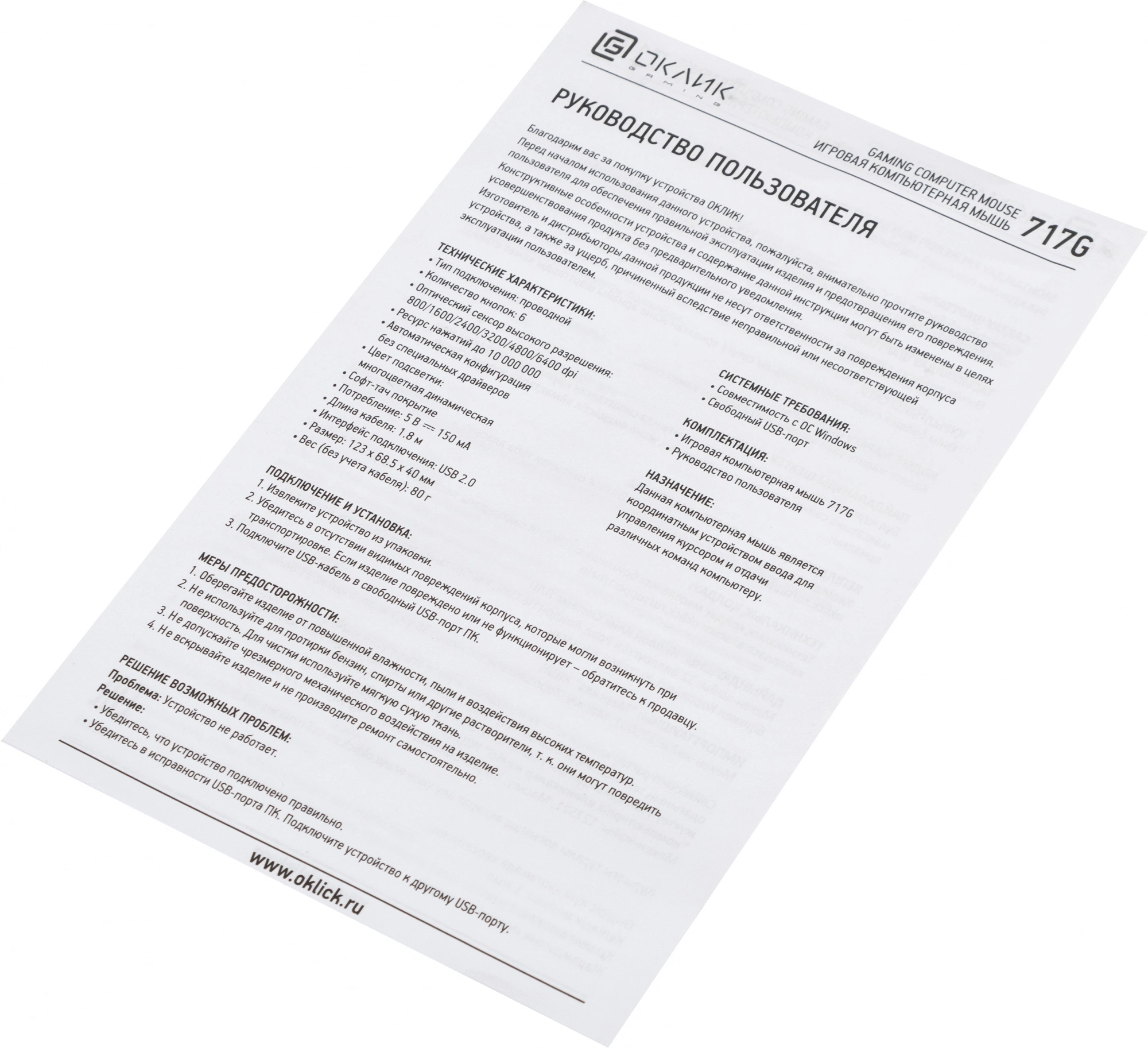 Oklick 717G PROPHECY – это оптическая мышь для геймеров, которые не готовы идти на компромиссы в точности и скорости. С максимальным разрешением сенсора в 8000 dpi и широким диапазоном настраиваемых уровней от 500 до 8000 dpi, эта мышь предлагает исключительную адаптивность к различным игровым стилям и потребностям.