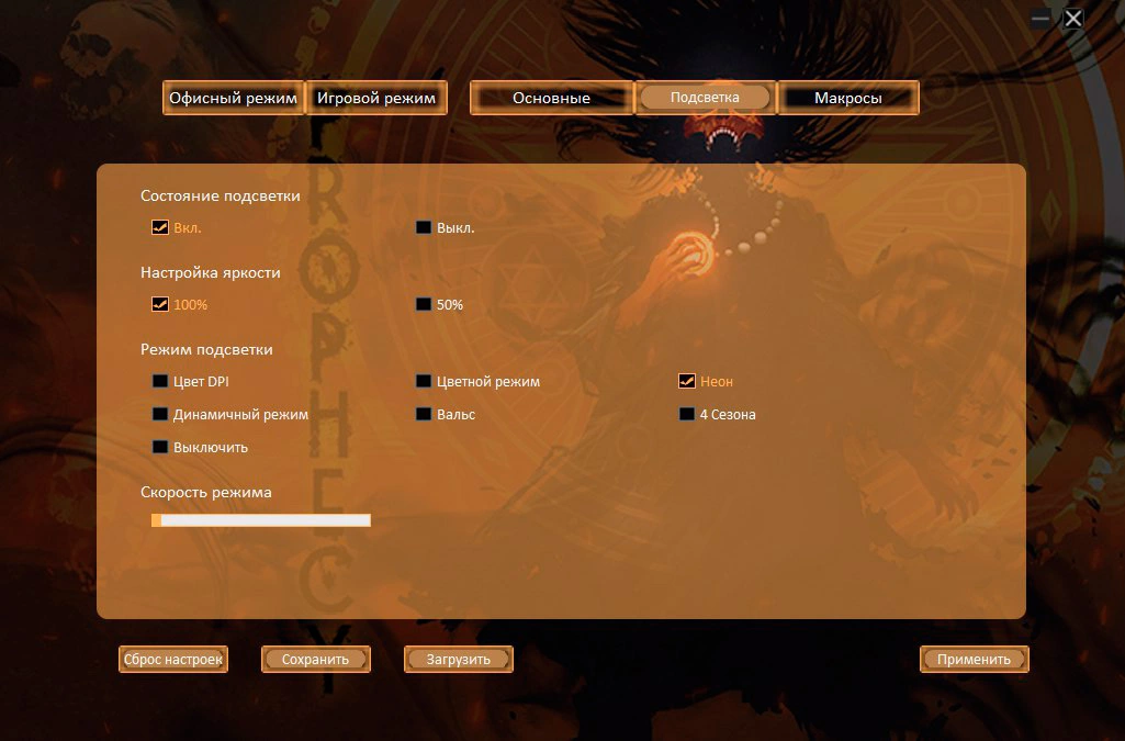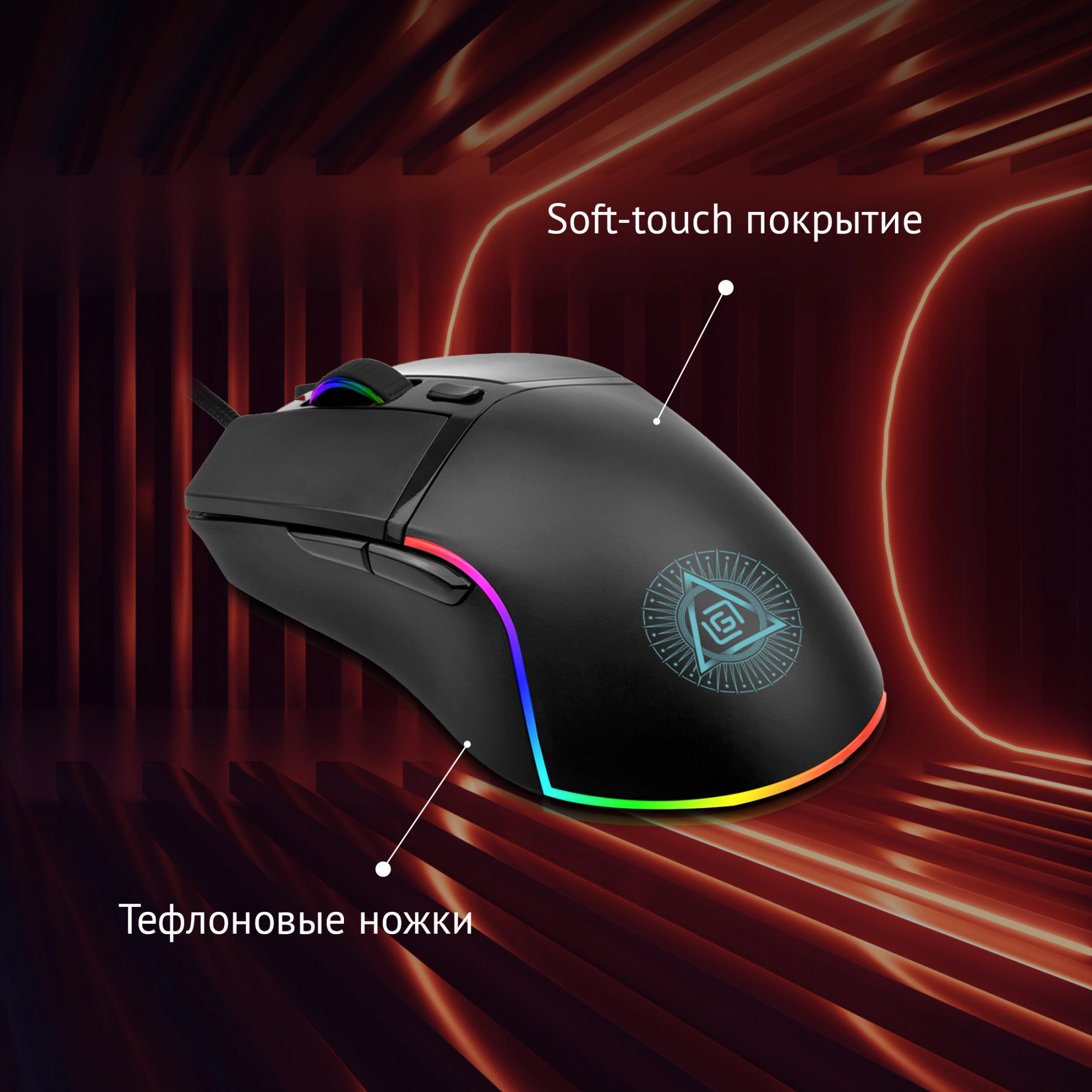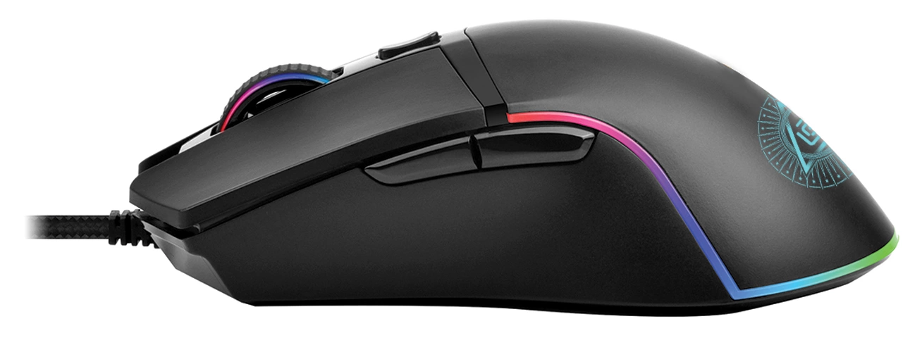 Одной из особенностей является программируемая RGB подсветка, которая позволяет настроить яркость и скорость эффектов или отключить подсветку. Кабель мыши покрыт прочной оплеткой и оснащен магнитным фильтром, что значительно продлевает срок службы и защищает от помех.