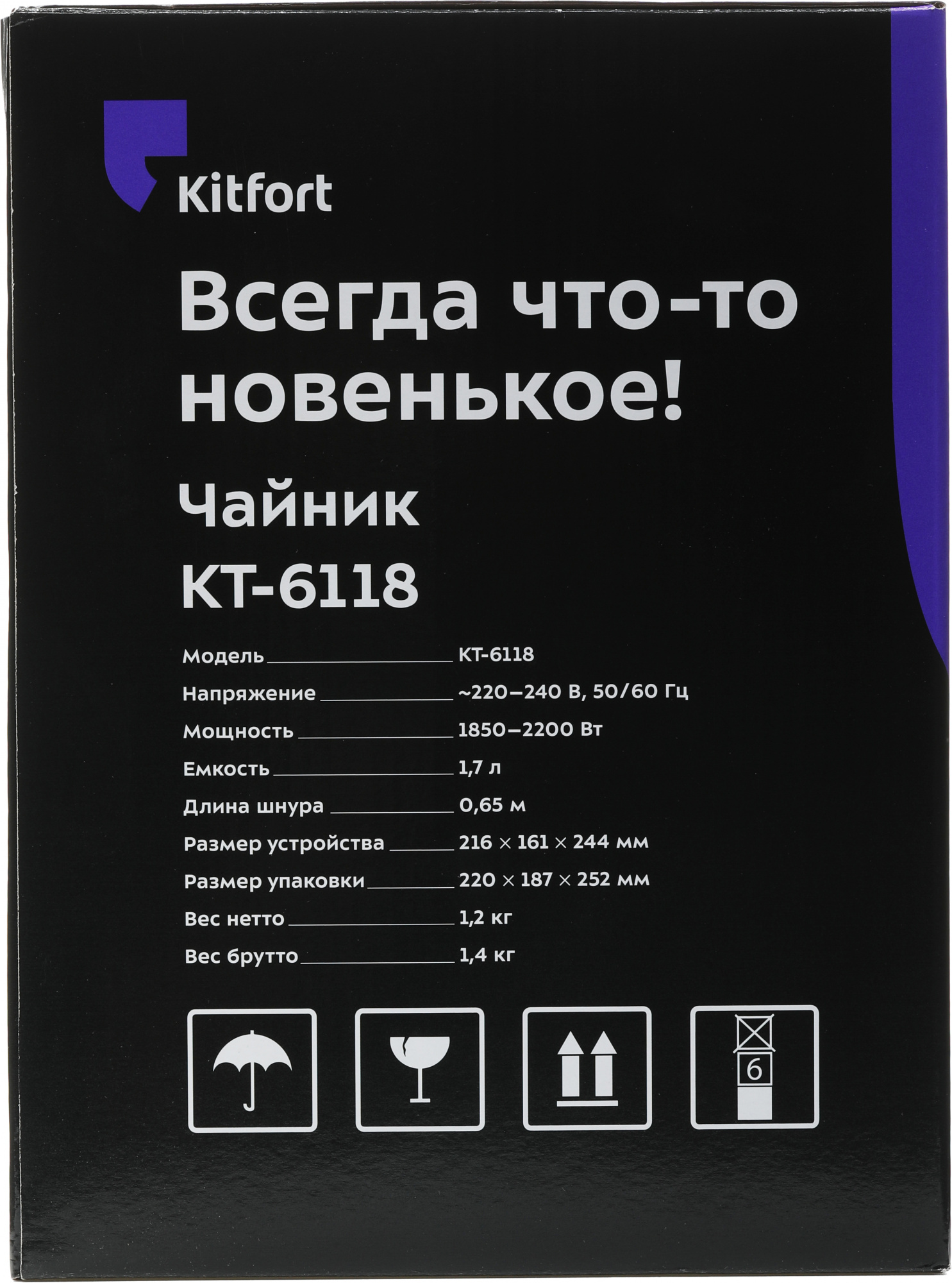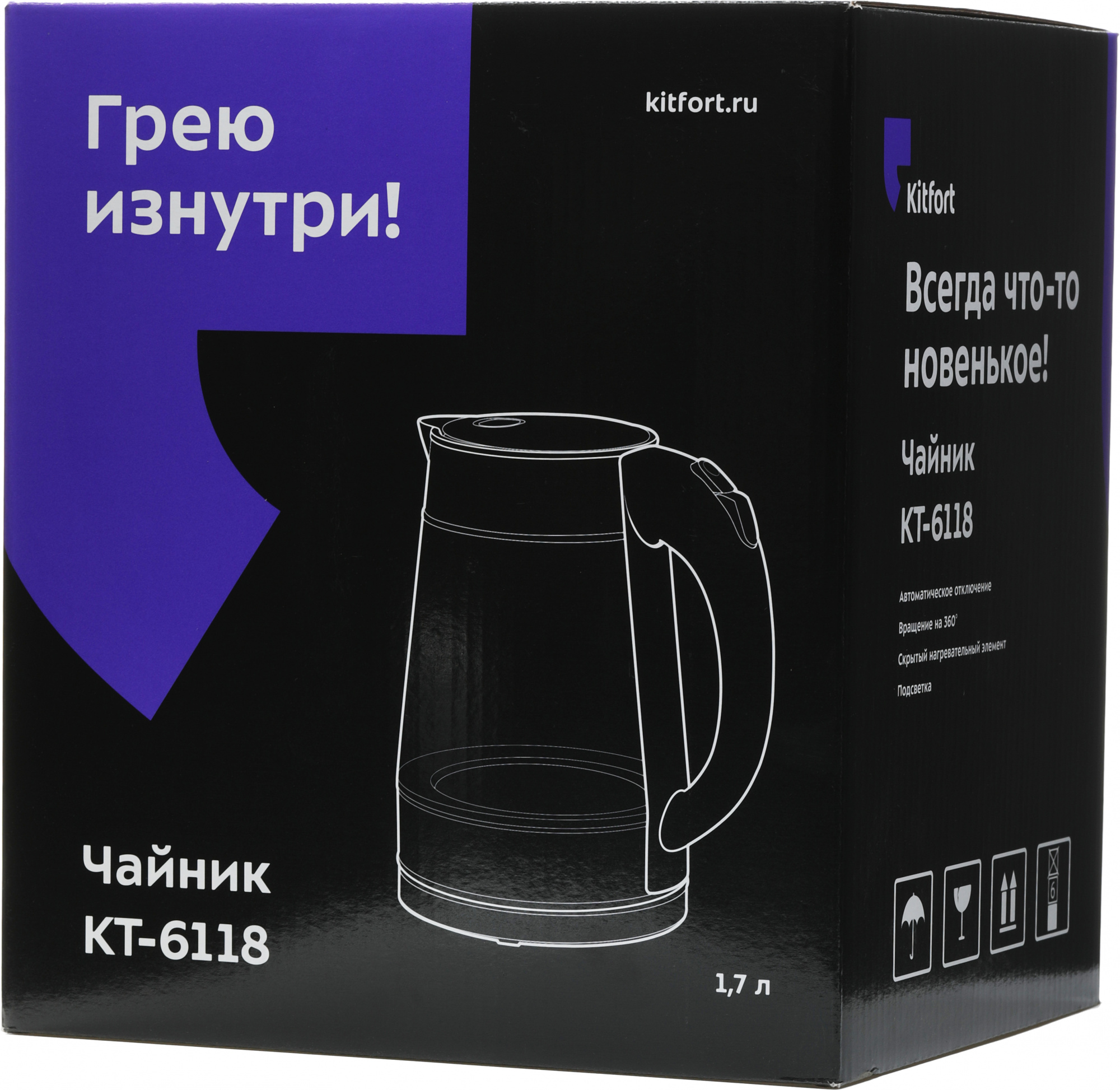 Чайник выполнен из стекла, пластика и нержавеющей стали. Подсветка голубого цвета поможет определить количество воды в чайнике даже в темноте. Мерная шкала нанесена на корпус. Благодаря своему дизайну идеально впишется в любой интерьер!