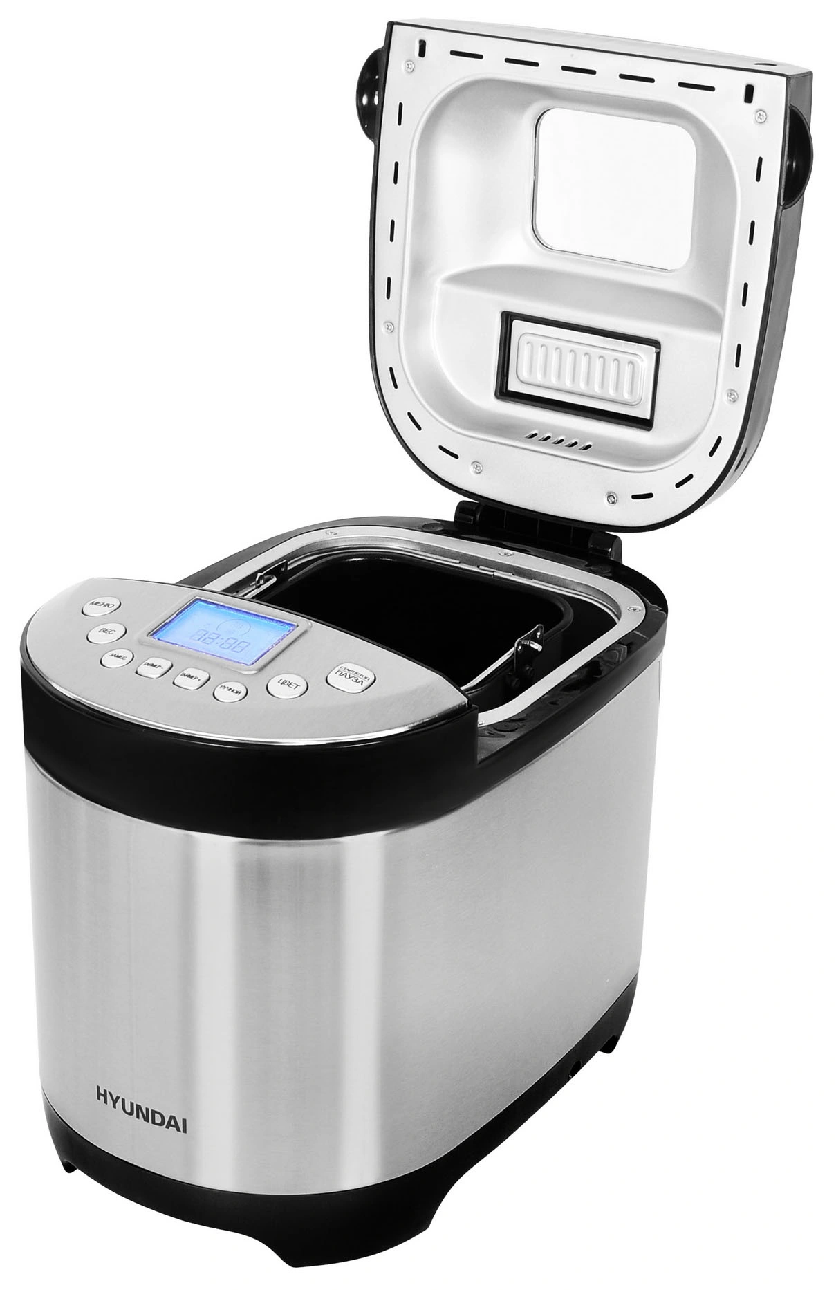 Хлебопечка Hyundai HYBM-4081 отличается современным внешним видом, способна украсить интерьер кухни любого дизайна. Бытовая техника отличается высоким качеством сборки, сделана из материалов, которые имеют высокую прочность, отличаются устойчивостью к воде и горячему пару. Имеет суммарную мощность 550 Вт. Верхняя крышка легко и удобно открывается путем нажатия механической кнопки. Если она будет неплотно закрыта, кухонное оборудование попросту не запустится. Сверху также расположены кнопки управления устройством, есть надписи на русском языке с названиями программ. Вся информация о рабочих режимах выводится на дисплей.