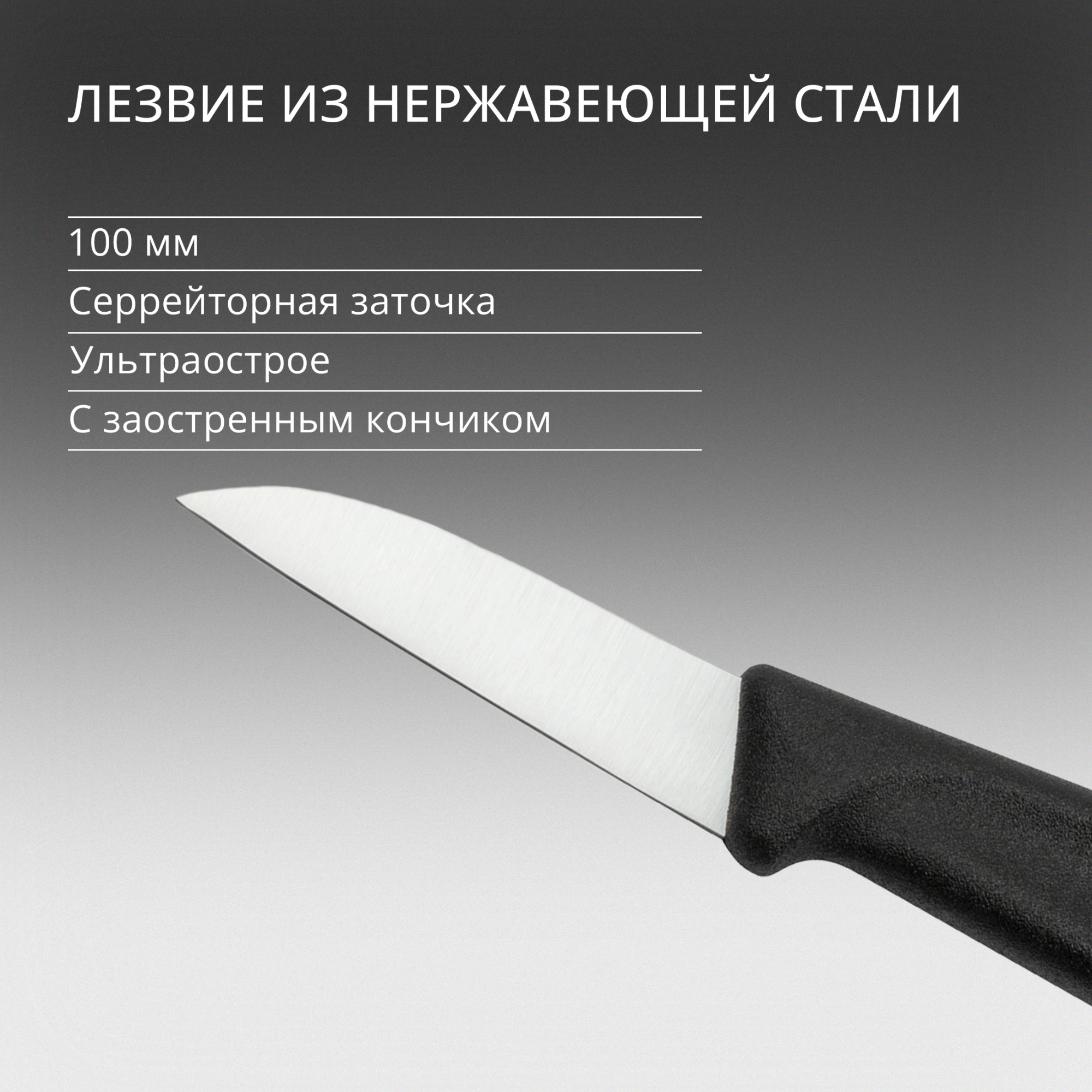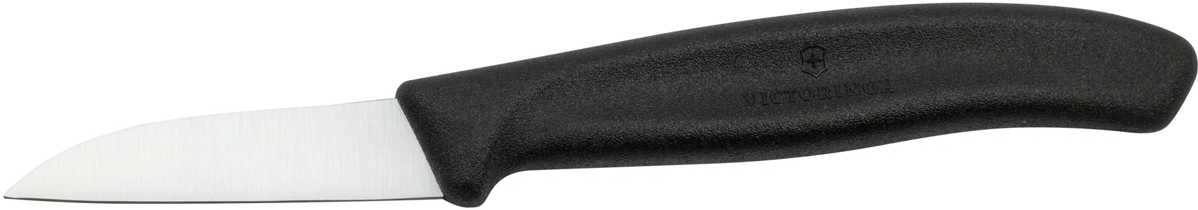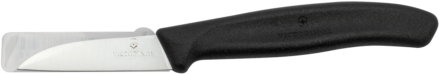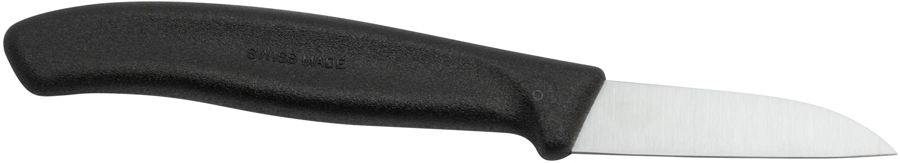 Нож для очистки овощей швейцарского производства с прямым лезвием.
