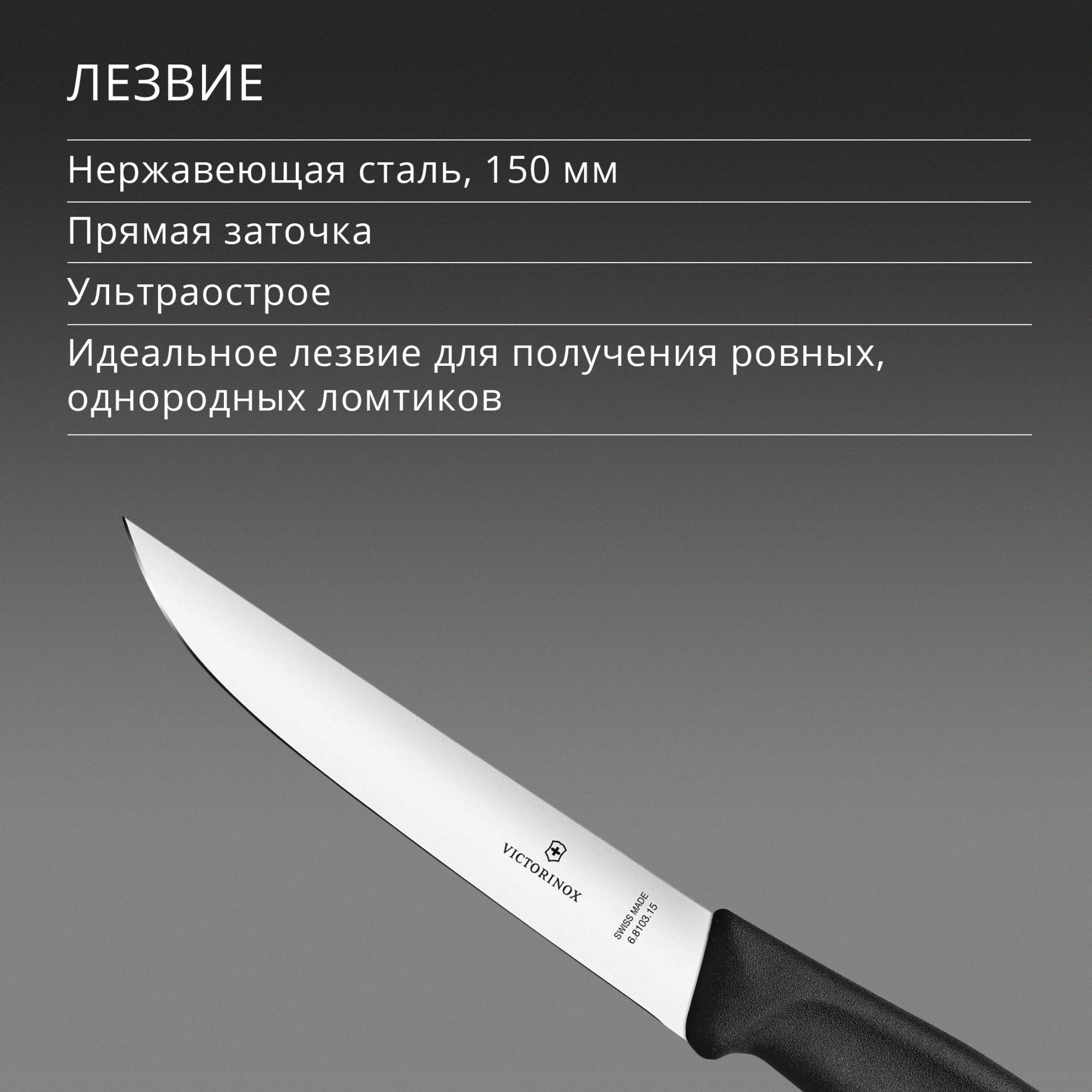 Карвинг всегда должен быть легким. В этом поможет наш швейцарский классический разделочный нож: превосходное лезвие, обеспечивающее ровные и равномерные срезы, каждый надрез и каждый раз. Эргономичная рукоятка и сбалансированная конструкция обеспечивают надежную устойчивость на разделочной доске. Кроме того, тонкое, сверхострое лезвие с абсолютной точностью нарезает курицу, говядину или свинину.