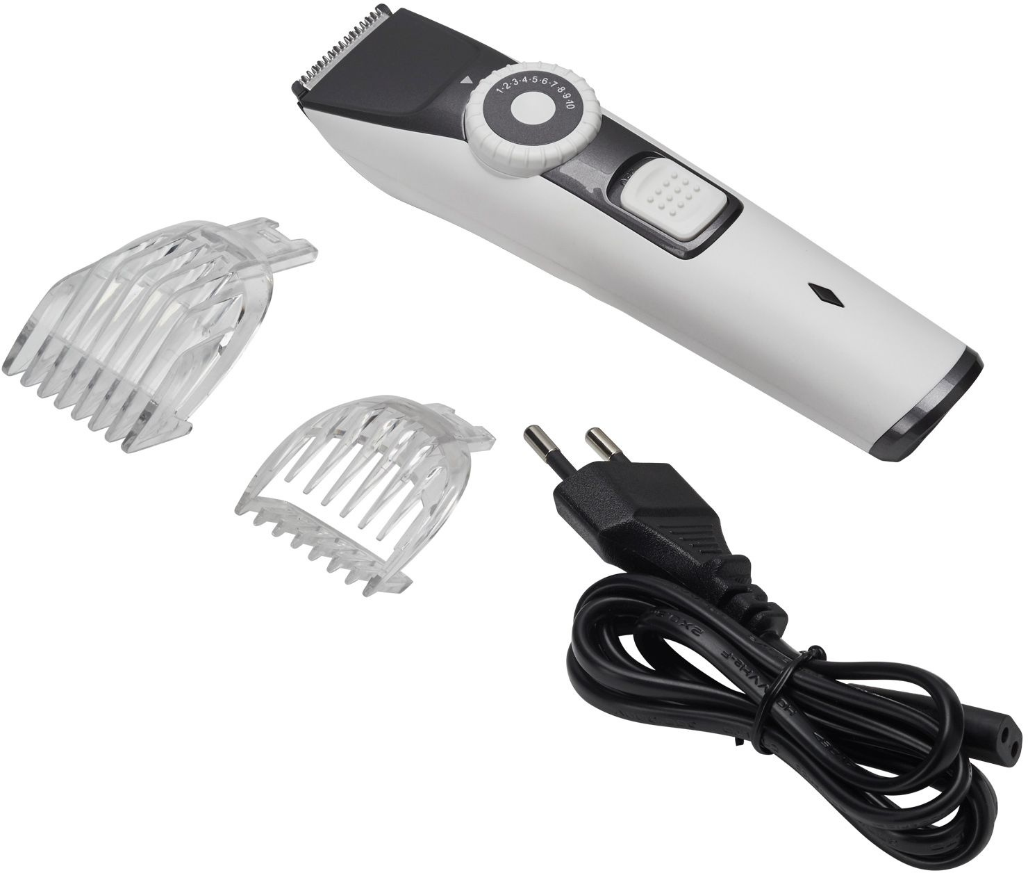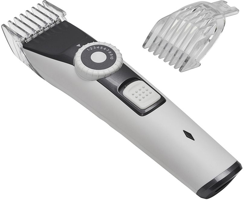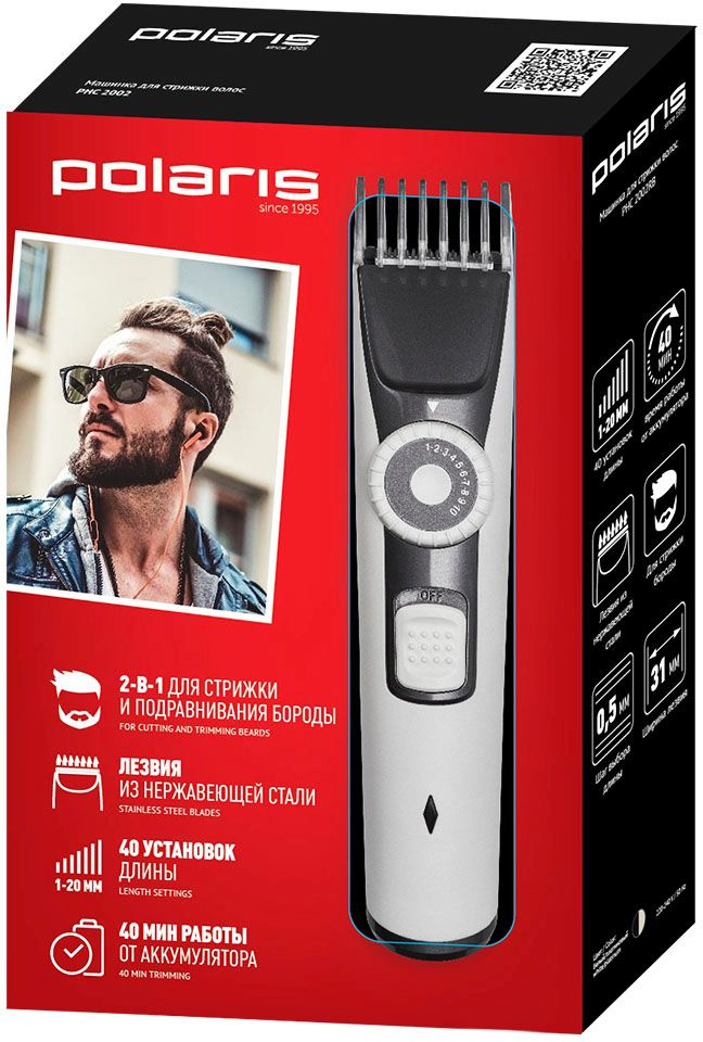 Работа от аккумулятора. 40 установок длины: 1-20 мм, (шаг 0.5 мм). Минимальная длина стрижки 0.5 мм. 40 минут работы от аккумулятора. 8 часов для полного заряда. Лезвия из нержавеющей стали. 2 насадки-триммера. Ширина лезвия 31 мм.