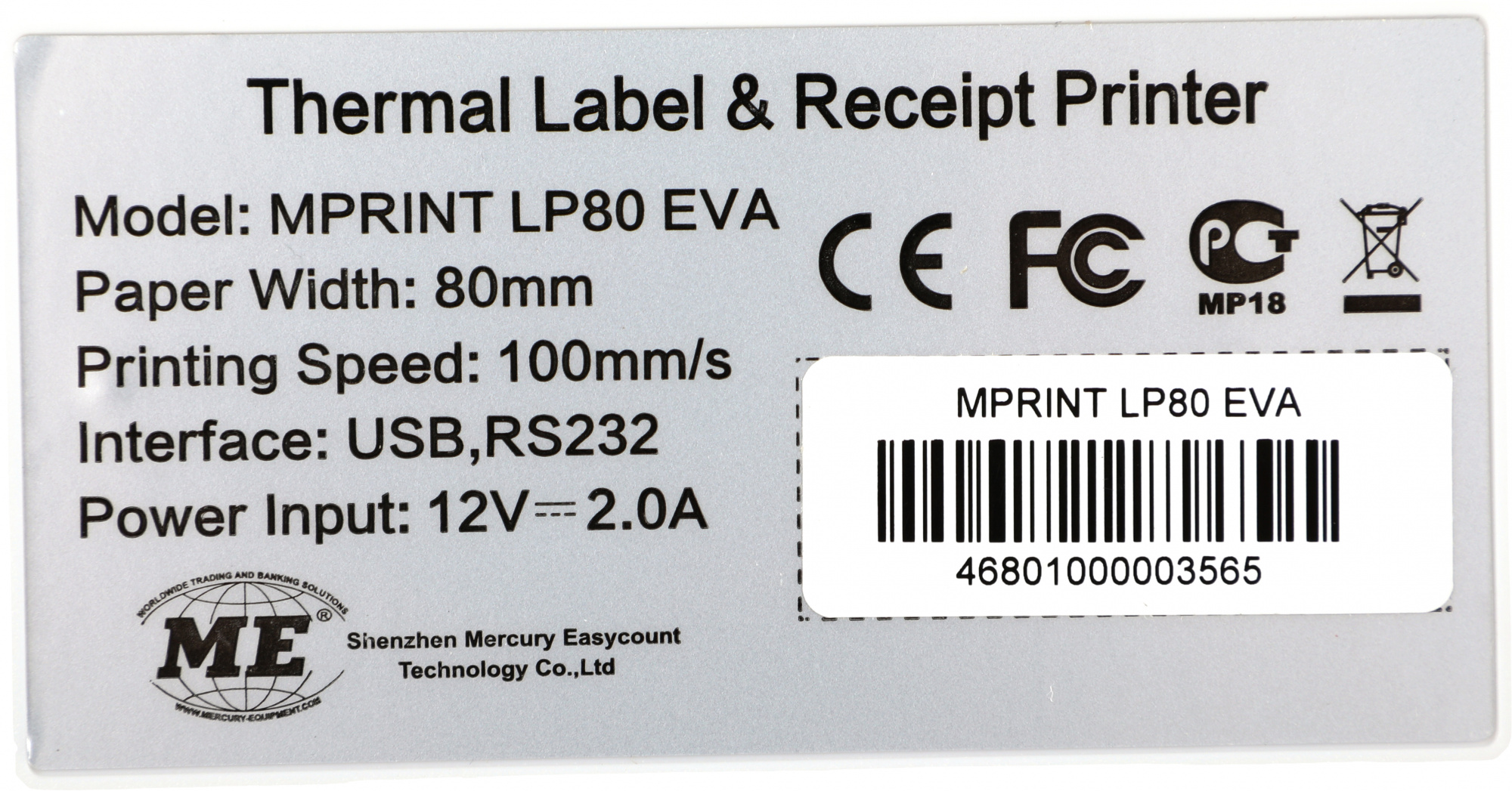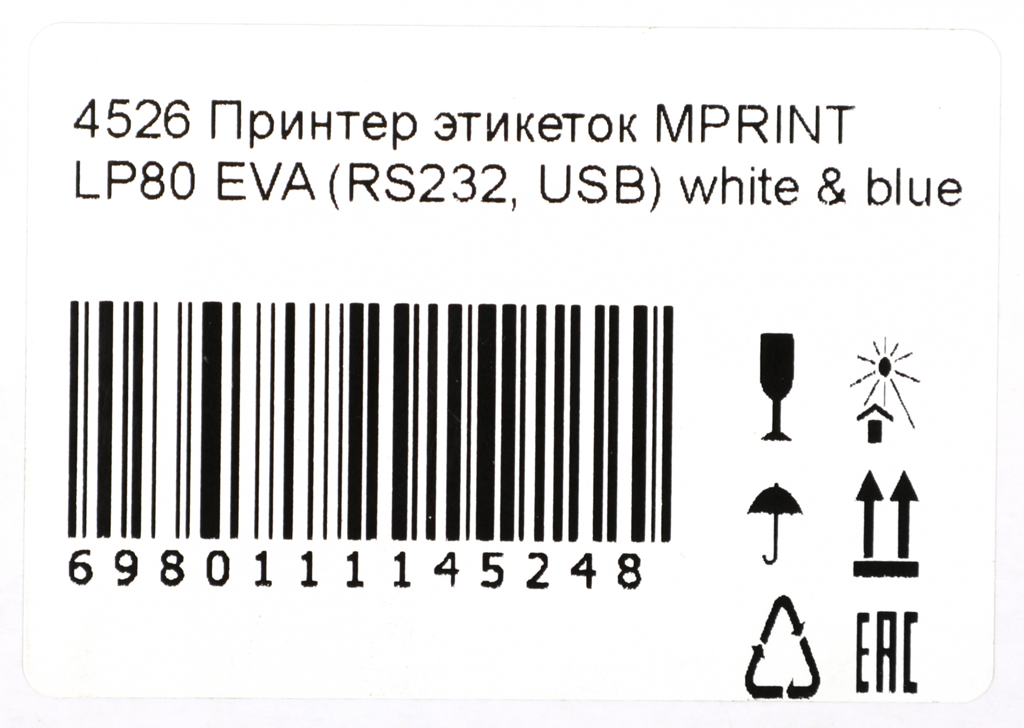 MPRINT LP80 EVA – это современный термопринтер. Печатает на чековой термобумаге или на липких термоэтикетках. Подходит для печати чеков или этикеток для маркировки товара. Может использоваться в любой сфере: в магазинах, аптеках, заведениях общественного питания и других направлениях бизнеса.