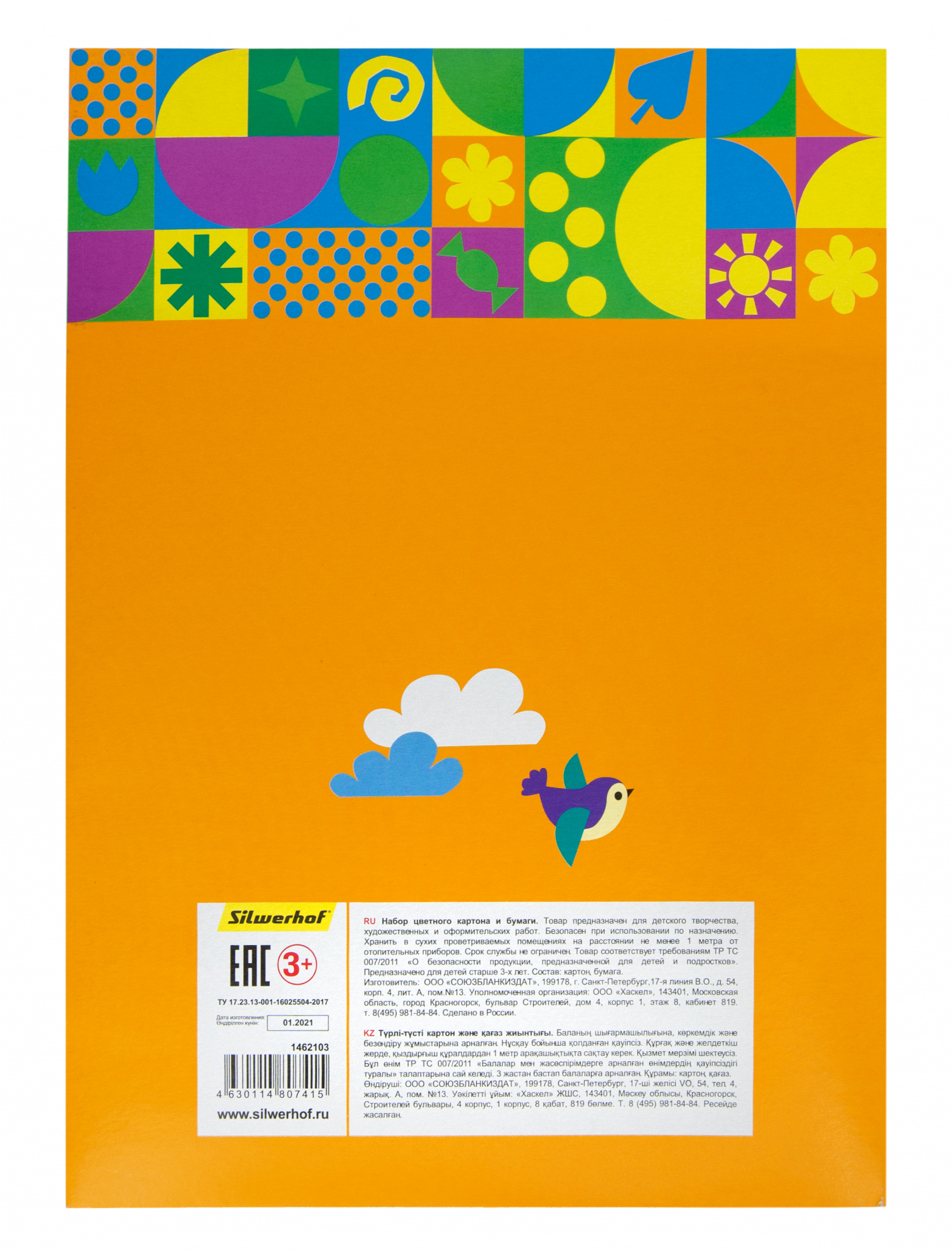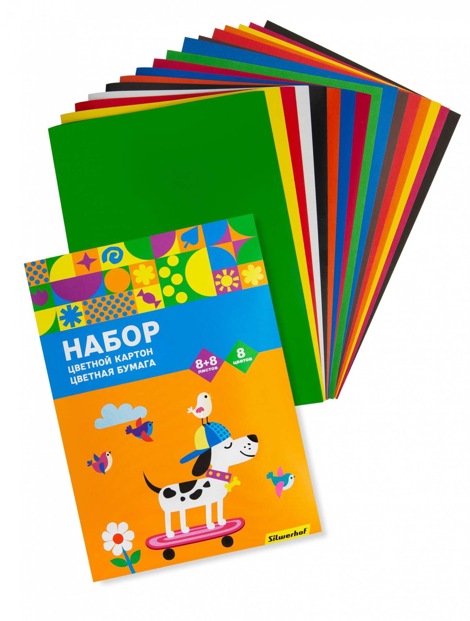 Набор картона/бумаги Silwerhof ассорти 16л. 8цв. A4 Скейтбордист 230г/м2 1диз. обл.мел.картон папка