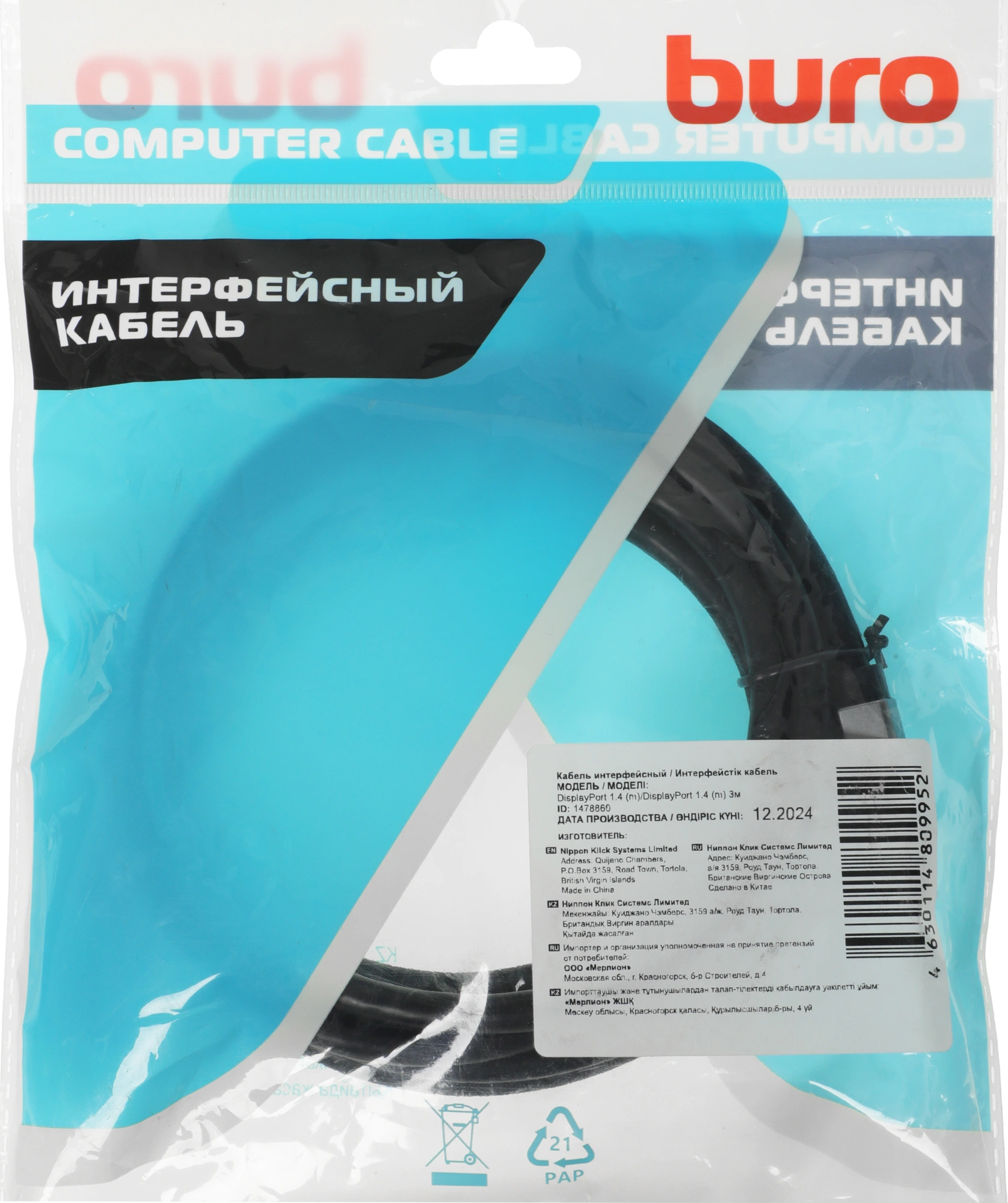 DisplayPort (m)/DisplayPort (m) 3м. позолоч.конт. ...
