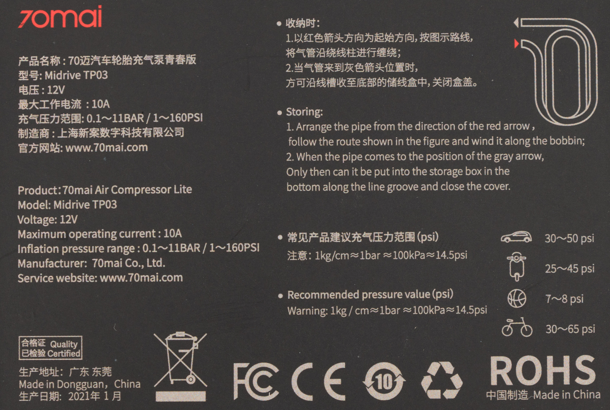 Автомобильный компрессор 70Mai Air Compressor Lite