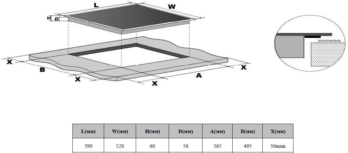 Размеры для встраивания