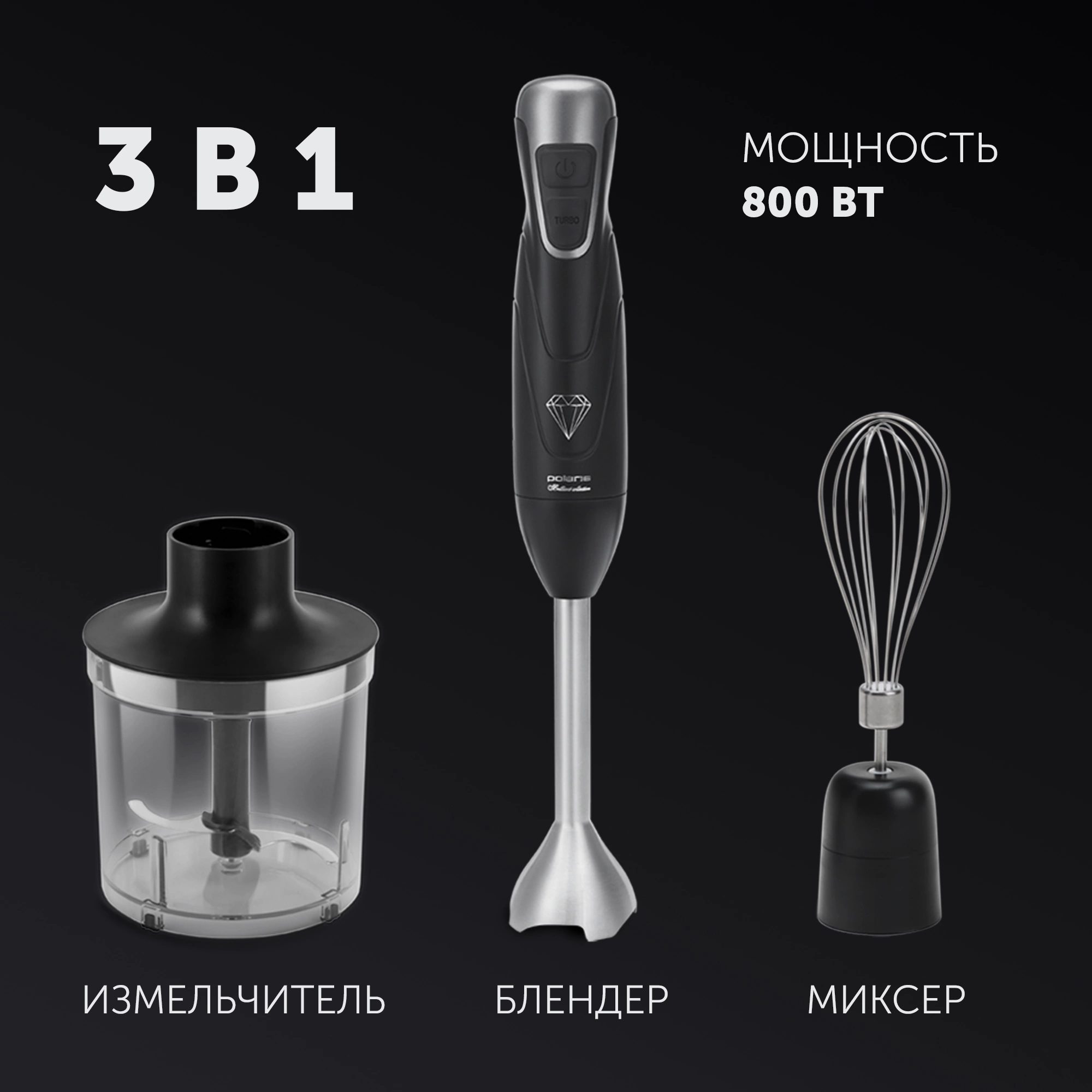 3 В 1: Измельчитель, Миксер, Блендер.