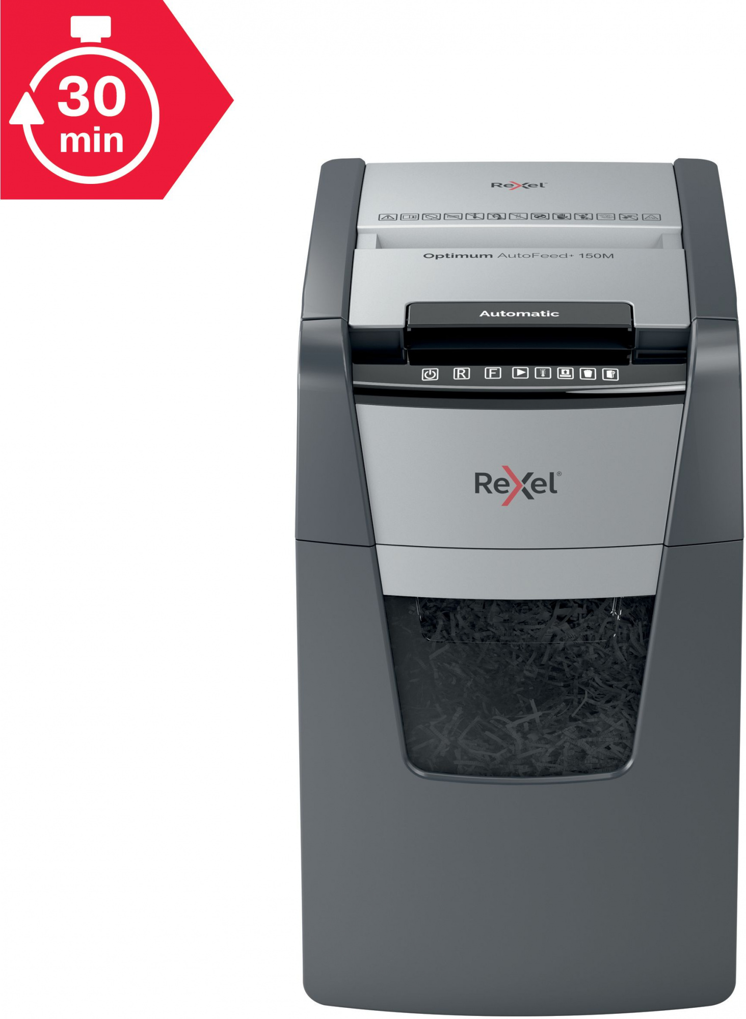 Технология антизамятия. Сенсорная панель управления. Ручная подача до 6 листов. Инфракрасный датчик заполнения корзины. Автоматическая подача документов до 150 листов формата А4 плотностью 80 г/м2 за один раз. Переходит в режим ожидания, если не используется более 3 минут.