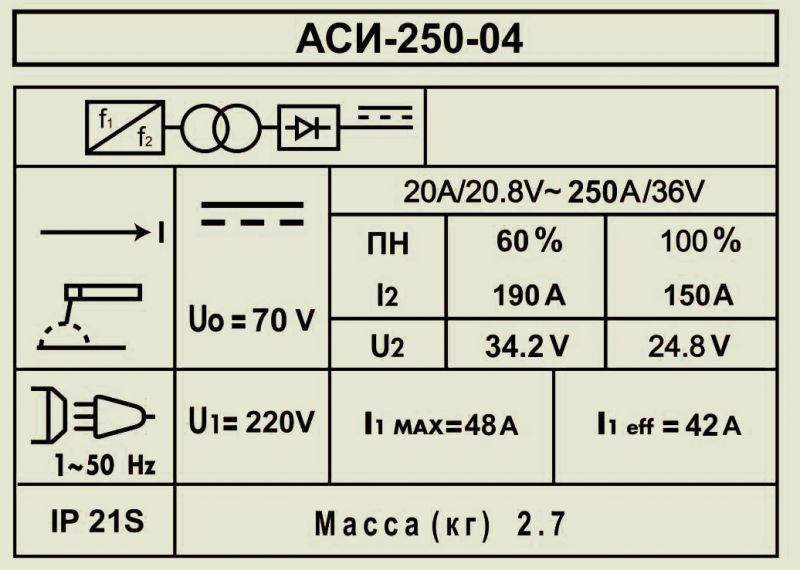 Аппарат сварочный инверторный АСИ-250-04 относится к устройству электросварочному бытового применения и предназначен для неразъемного соединения металлических частей с помощью электрической дуги, возникающей между электродом и свариваемым материалом.