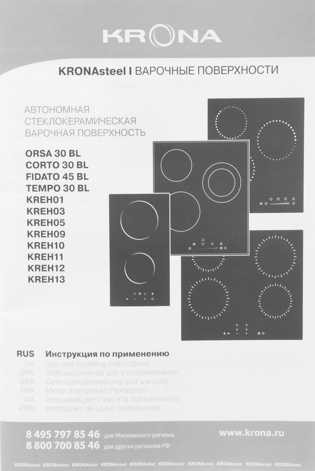 блокировка управления (защита от детей), защитное отключение, отключение при проливе жидкости