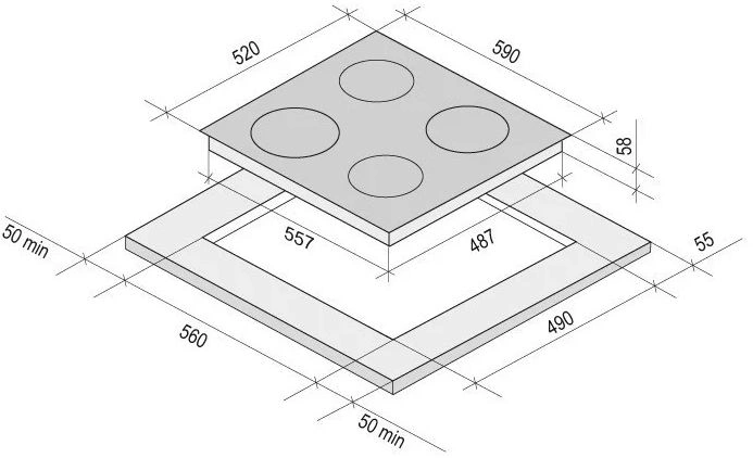 Размер (правой ближней конфорки)