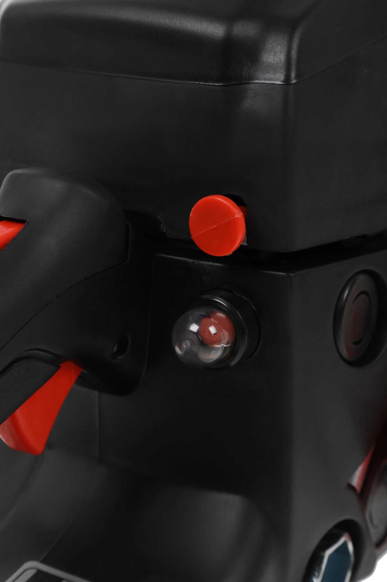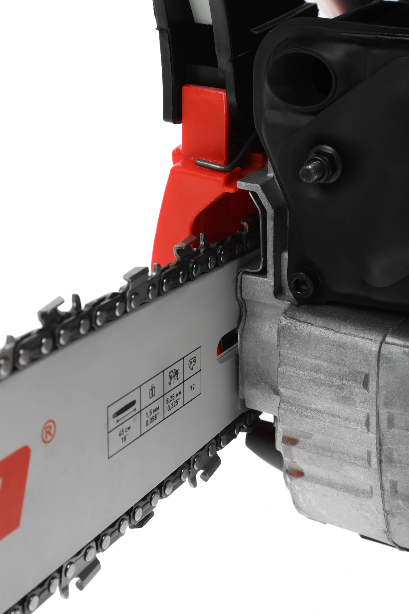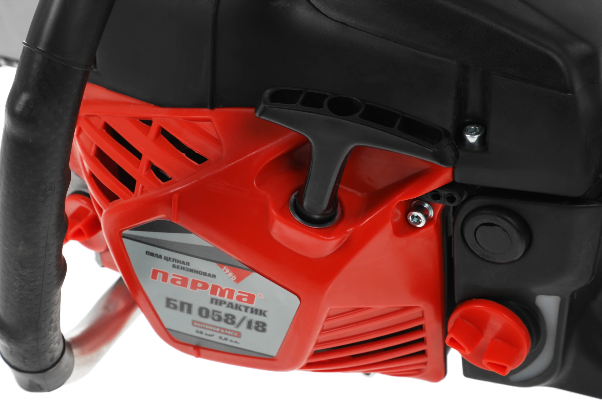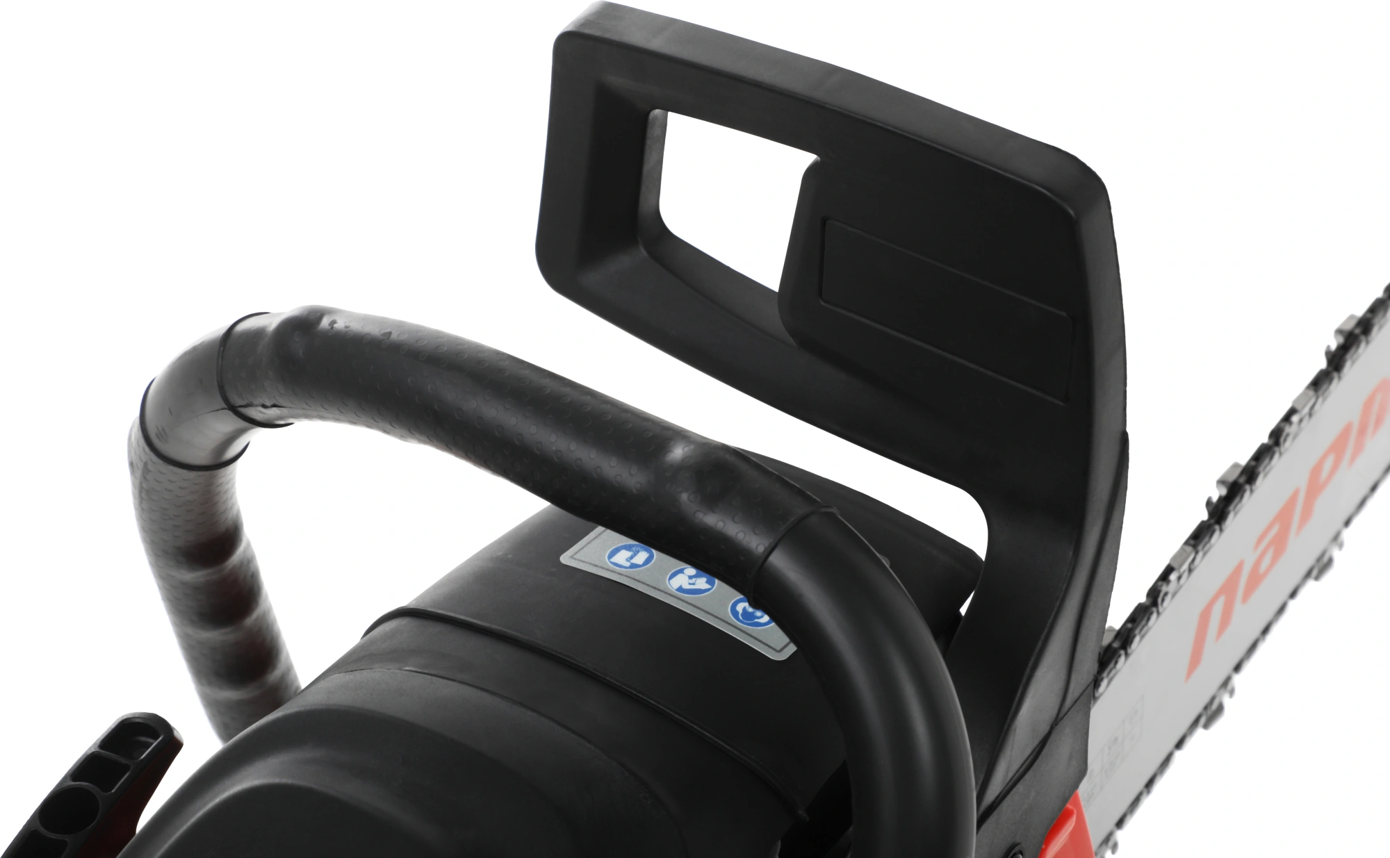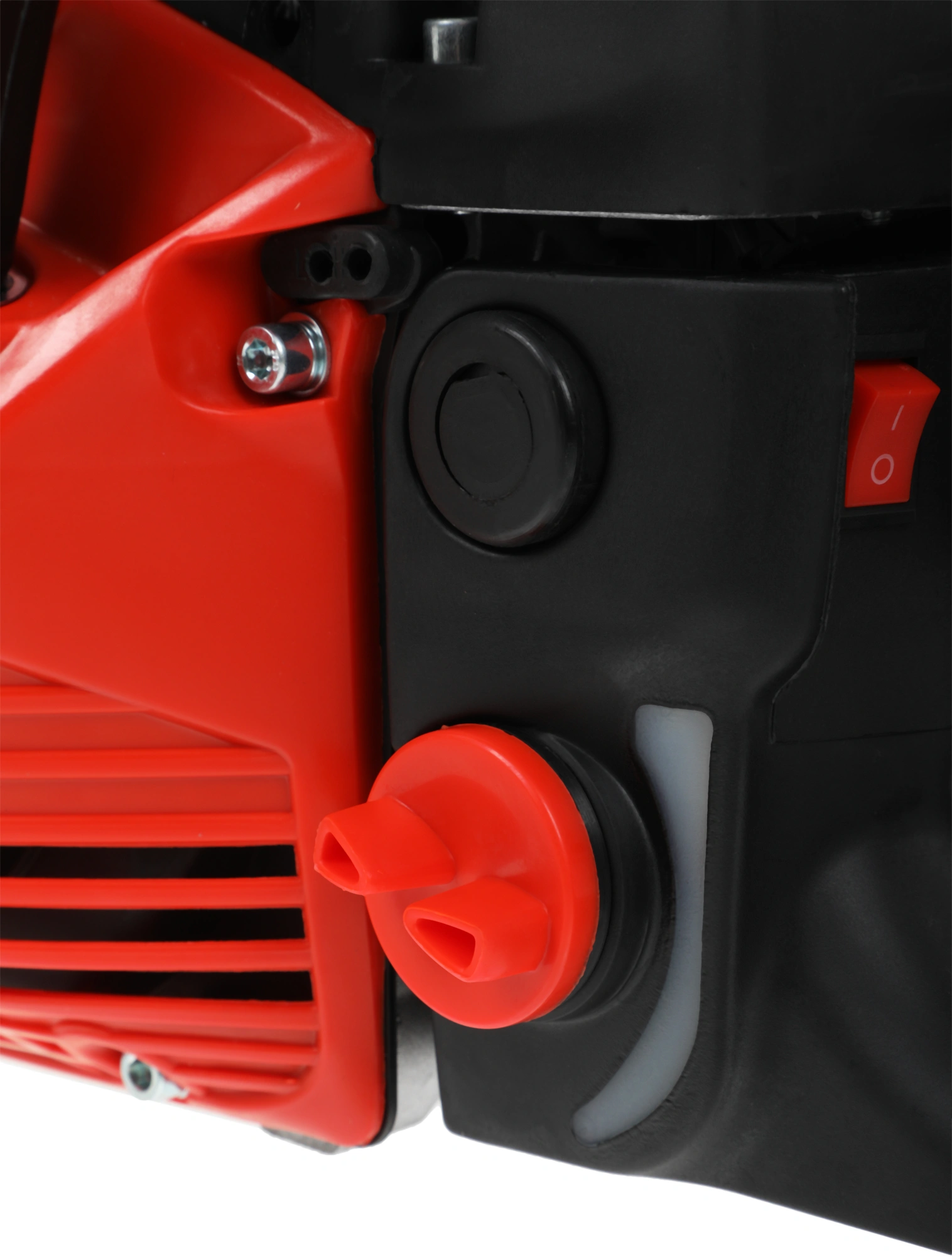 Материал корпуса устойчив к низким температурам. Окошко для контроля количества топлива в бензобаке. Топливная помпа для облегчения запуска двигателя. Многоточечная антивибрационная система. Прочный металлический картер двигателя. Стартер с системой легкого запуска. Регулируемая система смазки цепи.