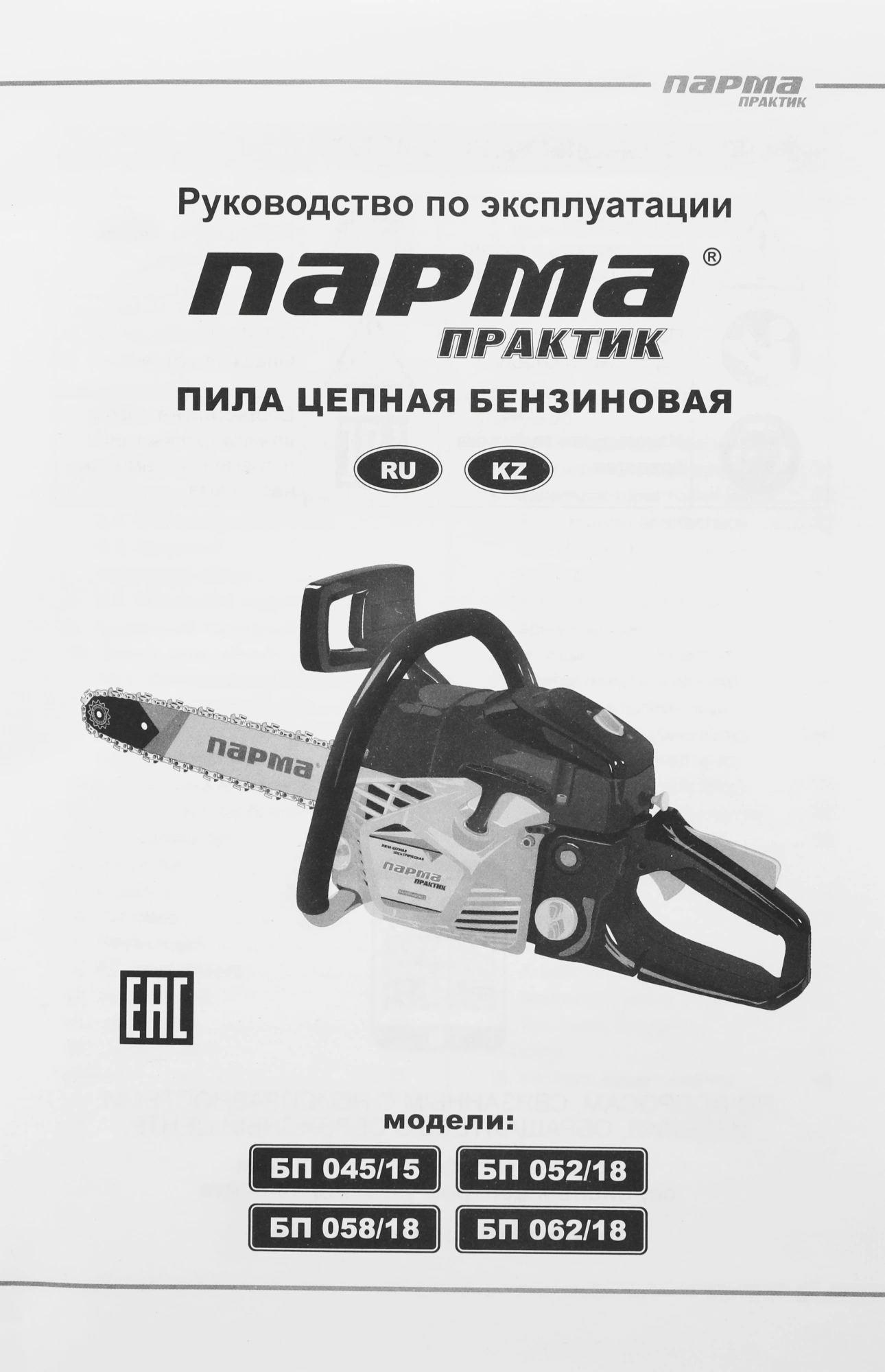 Пила, цепь, шина, чехол для шины, емкость для топливной смеси, ключ-отвертка, отвертка для регулировки карбюратора, шестигранный ключ, зубчатый упор с крепежом, инструкция.