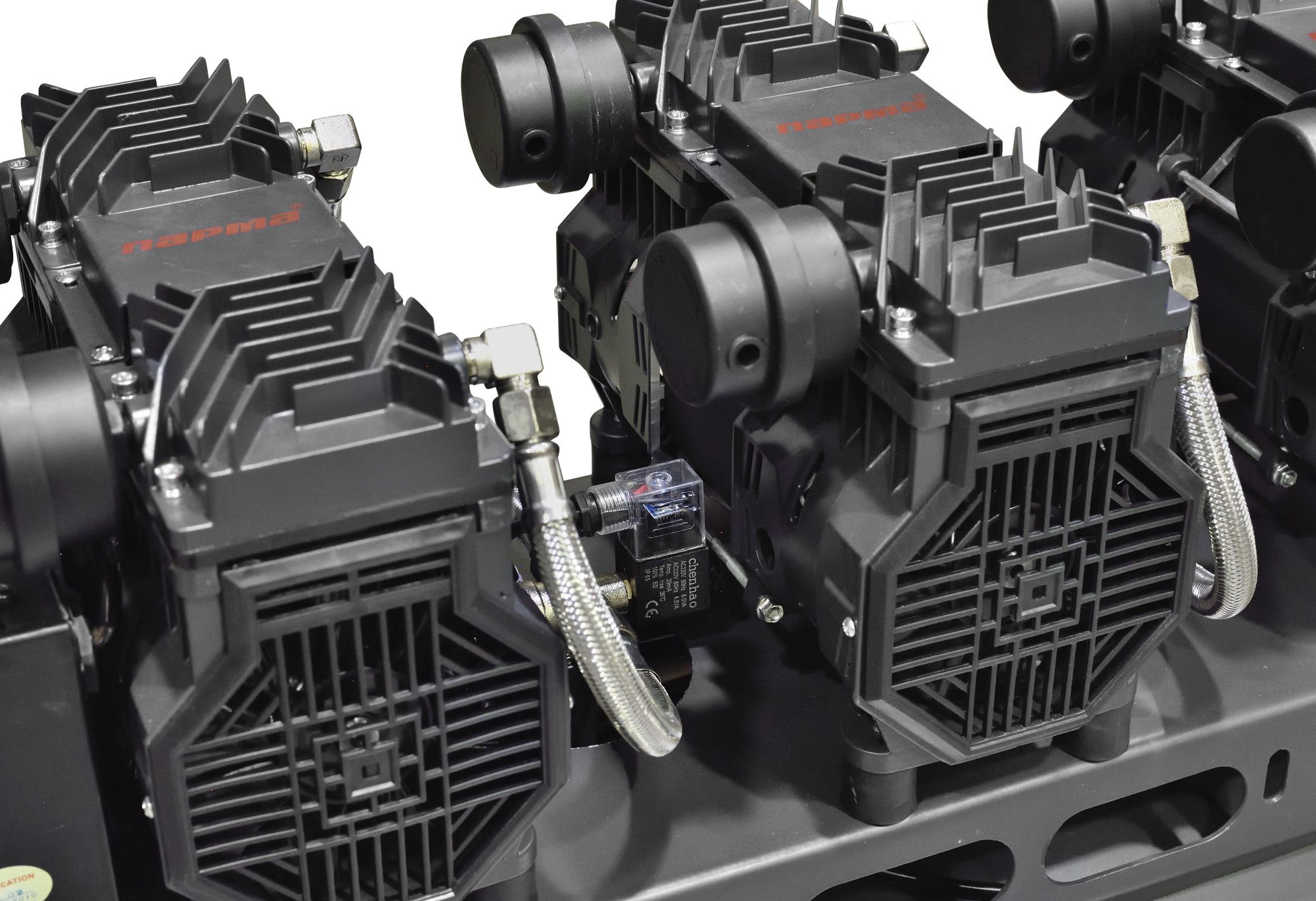 Трехмоторная, 6-цилиндровая компрессорная установка повышенной эффективности, последовательное включение двигателей в зависимости от расхода воздуха, электронное управление, низкий пусковой ток.