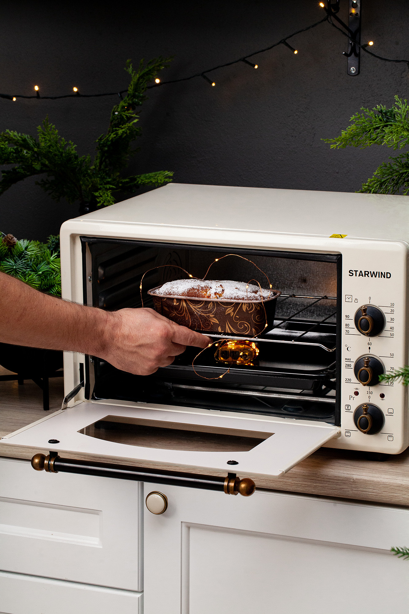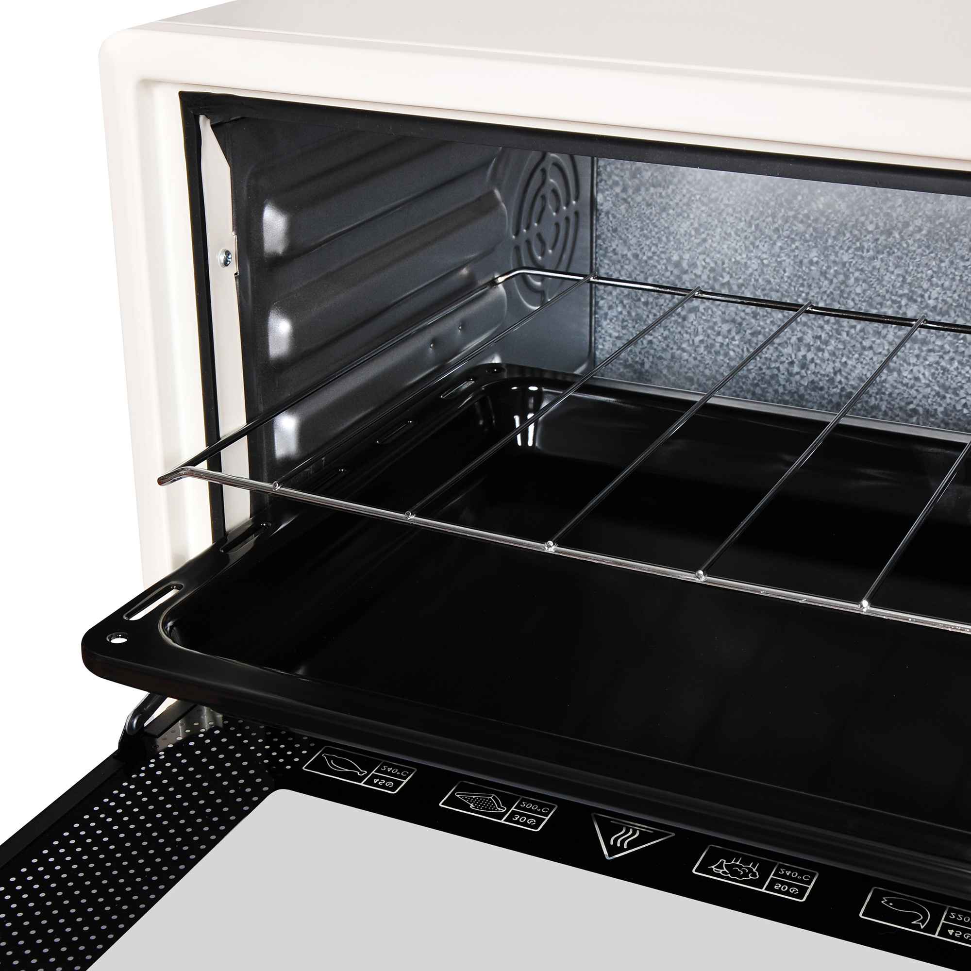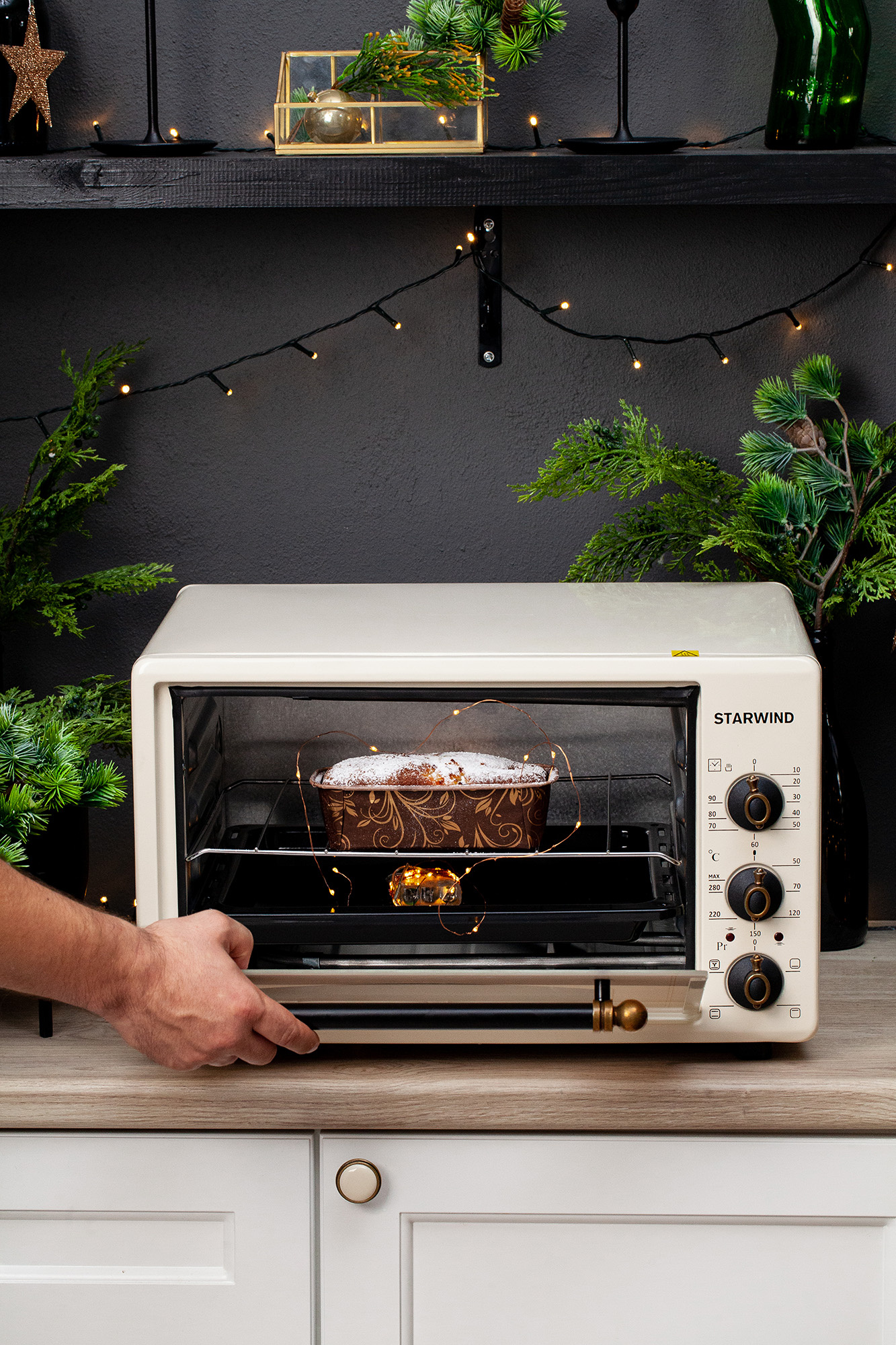 Электропечь Starwind SMO2026 сразу привлекает к себе внимание уникальным внешним видом, выполнена в ретро-стиле. Устройство представляет собой металлический корпус, на фронтальной части которого имеется стеклянная дверь. Выполнен бытовой прибор в светло-бежевом цвете, а ручки и переключатели стилизованы под старину. Мощность электрической печи составляет порядка 1300 Вт, а объем внутреннего пространства равен 36 литрам. Допускается приготовление блюд в различных температурных режимах – от 50 до 280 градусов Цельсия. Пользователю предлагается включить один из четырех режимов функционирования.