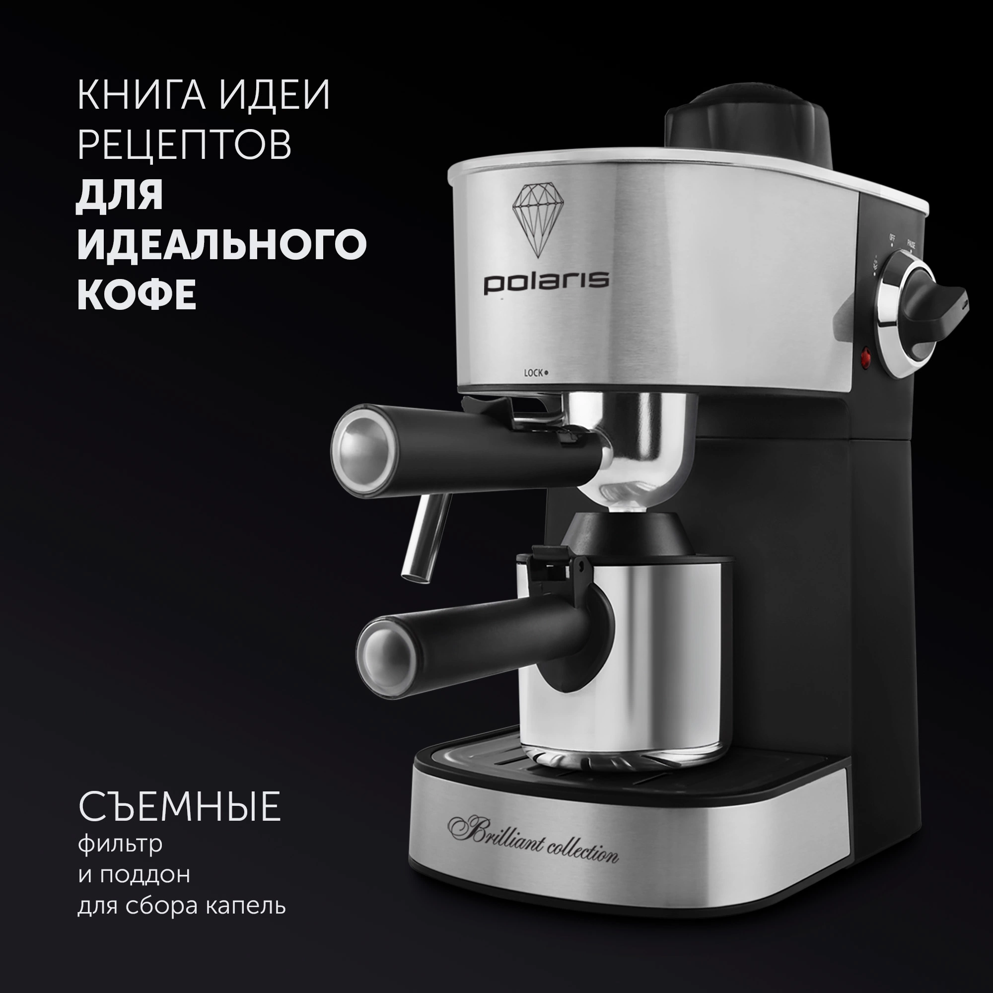 Защита от перегрева. Возможность приготовления до 4 порций кофе. Съемный поддон для сбора капель. Резервуар для воды 0,24 л. Трафареты для рисунков на молочной пене. Мерная ложка-уплотнитель в комплекте. Съемный фильтр. Мощность: 800 Вт. Книга идей для кофе в подарок.