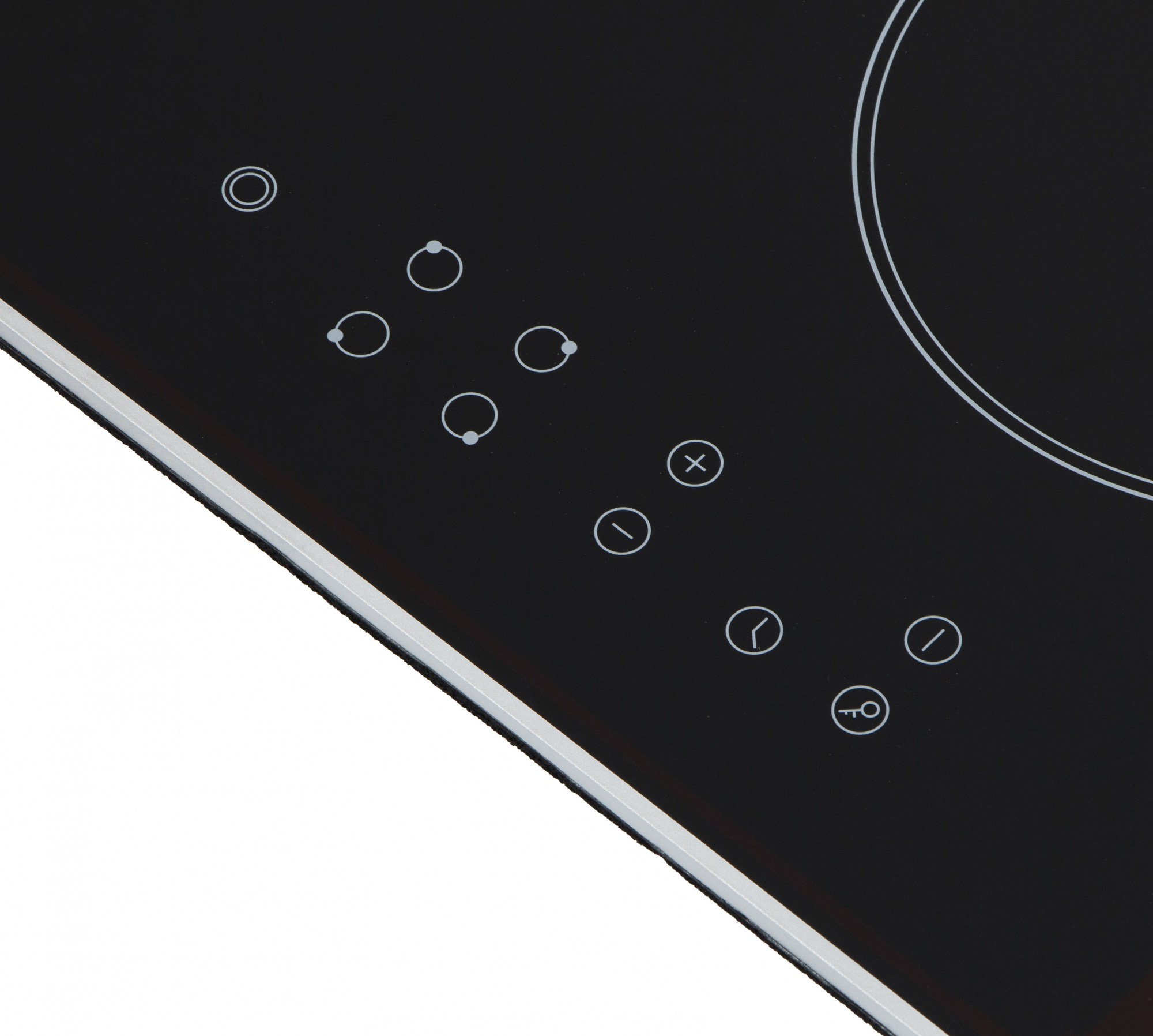 Управление интенсивностью работы конфорок вынесено на переднюю панель и её сенсорные кнопки. Рядом с ними расположен яркий жидкокристаллический дисплей, отображающий параметры приготовления пищи. Покрытие прибора сделано из качественной немецкой стеклокерамики Schott Ceran, отличающейся высокой надежностью и устойчивостью к физическим повреждениям и царапинам.