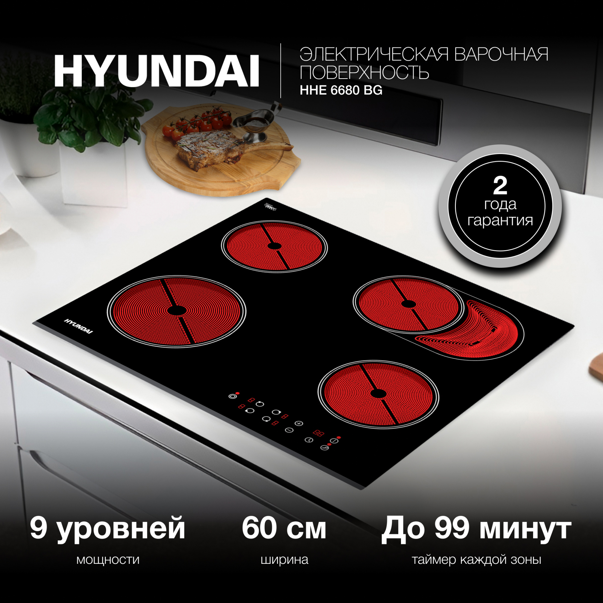 Hyundai HHE 6680 BG также оснащена рядом дополнительных эргономичных функций. Среди них таймер со встроенным звуковым сигналом, запускающий и выключающий варочную поверхность по времени, а также защита от детей, блокирующая сенсор.