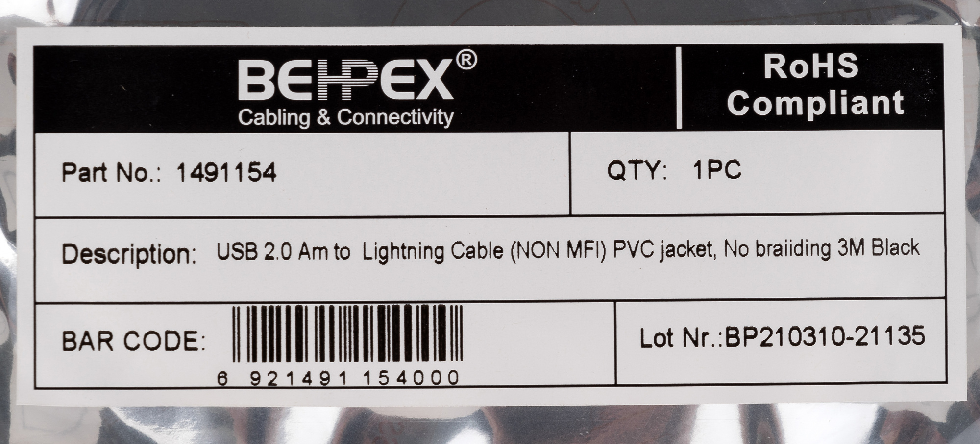 Кабель USB (m)-Lightning (m) 3м черный