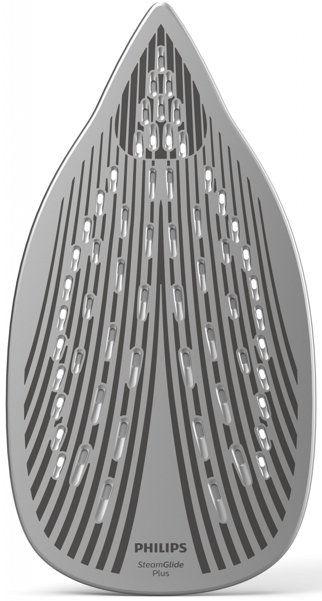 Устойчивая к царапинам подошва обеспечивает легкое скольжение. Встроенный слайдер очистки от накипи. Шнур протестирован на максимальную надежность и безопасность. Система "капля-стоп" предотвращает протекание воды на одежду во время глажения.