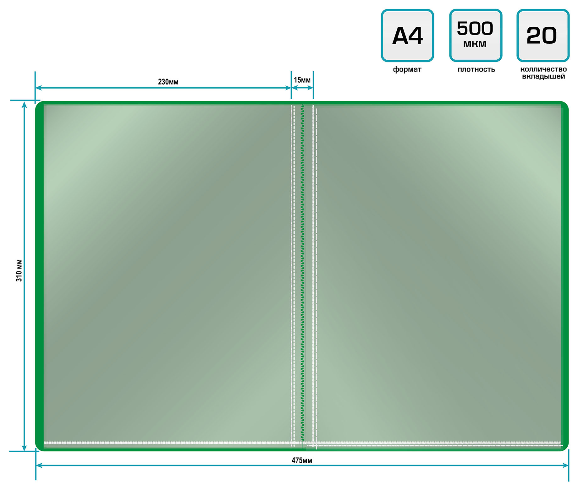 Папка с 20 прозр.вклад. Buro -ECB20GREEN A4 пластик 0.5мм зеленый