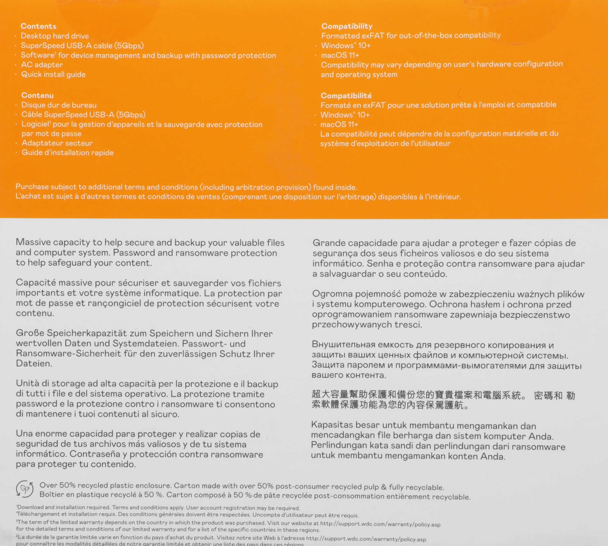 Настольный жесткий диск My Book, Кабель SuperSpeed USB-A (5 Гбит/с),ПО для управления устройствами и резервного копирования, Сетевой блок питания,Краткое руководство по установке