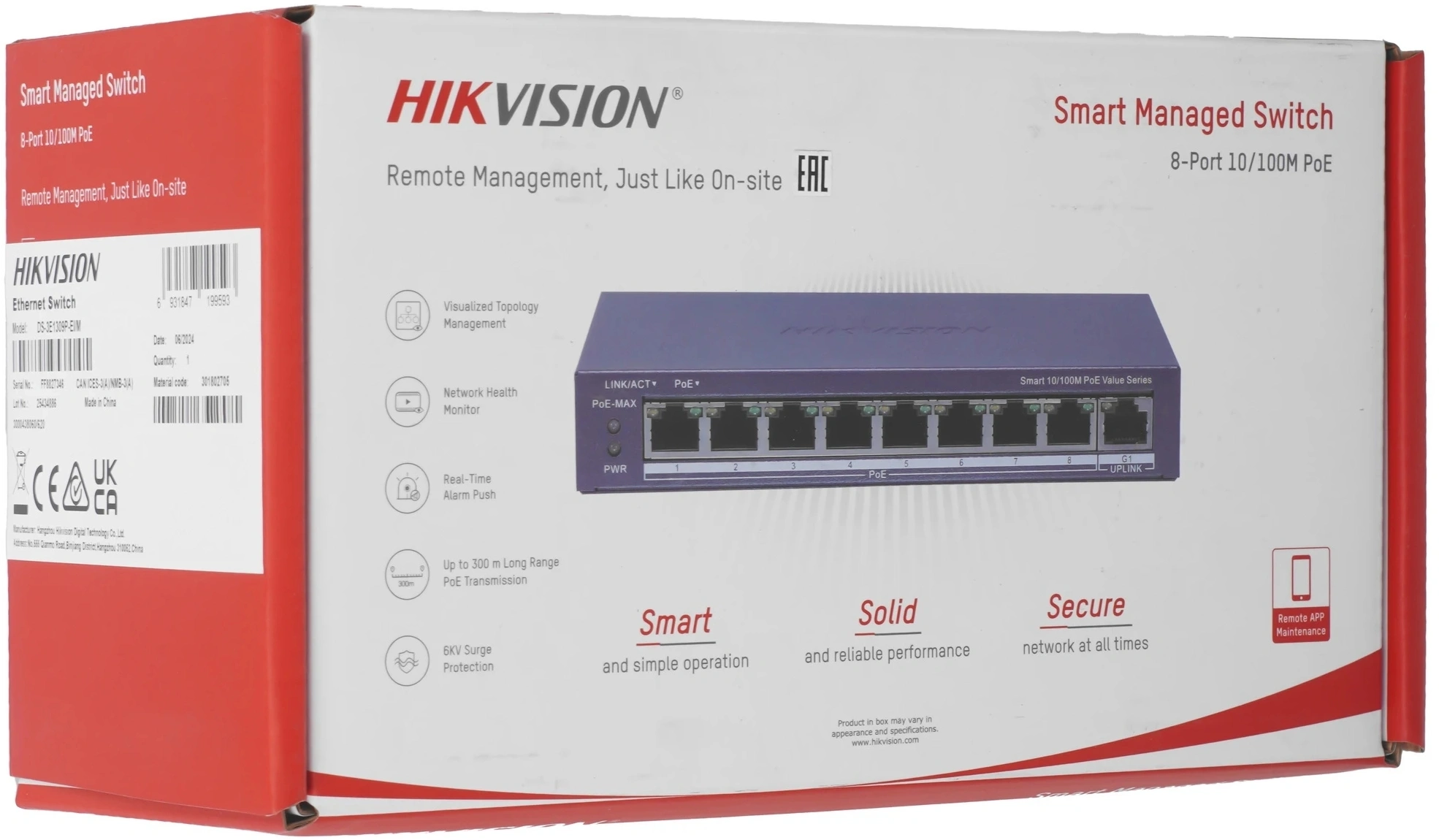 8x100Мбит/с 1x1Гбит/с 8PoE+ 110W управляемый