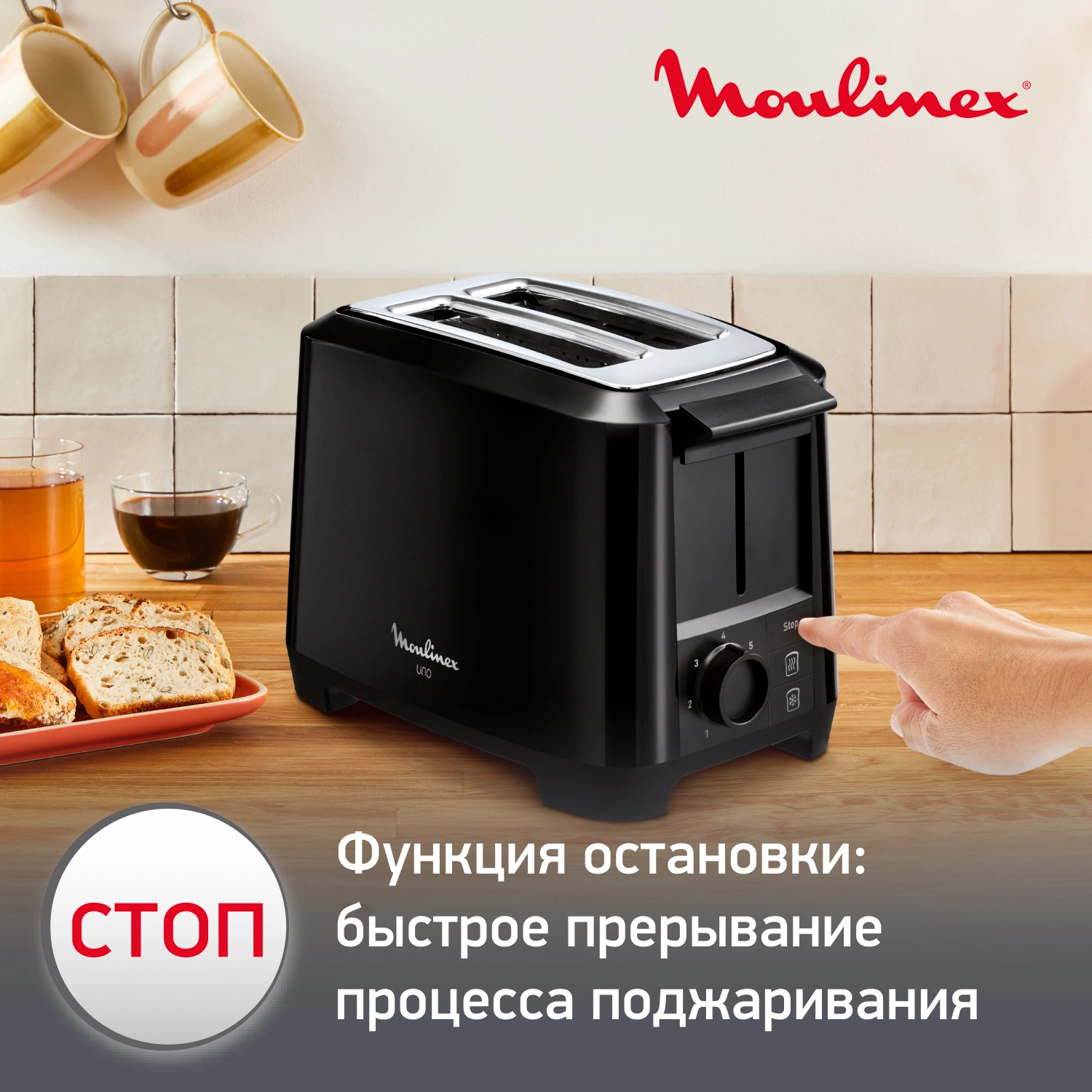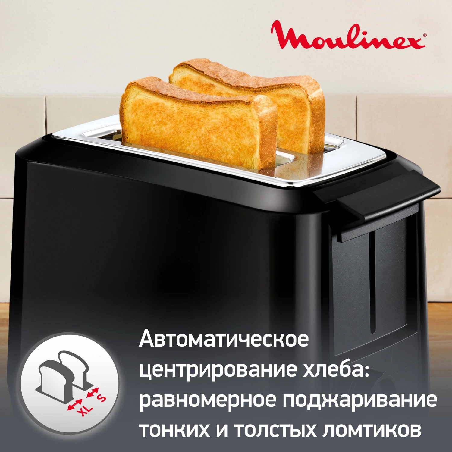 С тостером Moulinex Uno с 2 отсеками вы достигните совершенства в приготовлении тостов! 3 специальные функции и 7 настраиваемых степеней обжаривания гарантируют идеально точный результат. Автоматическая регулировка ширины отсека в зависимости от толщины хлеба расположит его точно по центру.